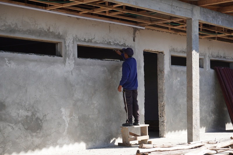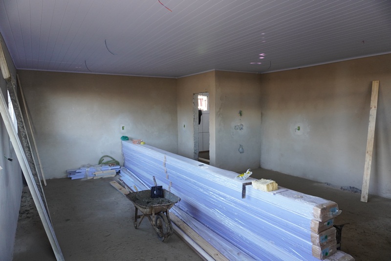 As obras de ampliação da Escola Municipal de Educação Básica Izabel Thiesen Roseto, localizada no bairro Vila Maria, continuam com o cronograma de execução dos serviços. Os trabalhos se concentram nos acabamentos de reboco, elétrica, colocação do forro de PVC, hidráulica, preparação para colocação das aberturas, entre outros.