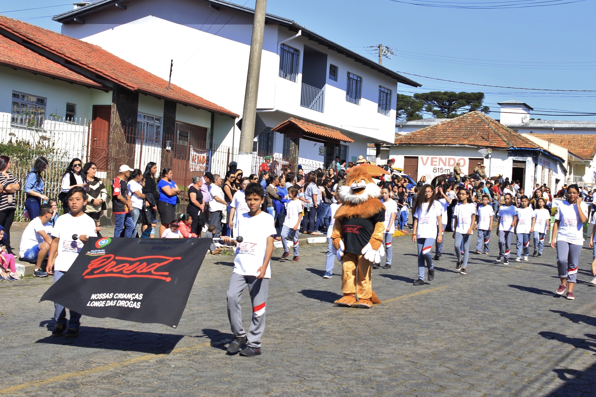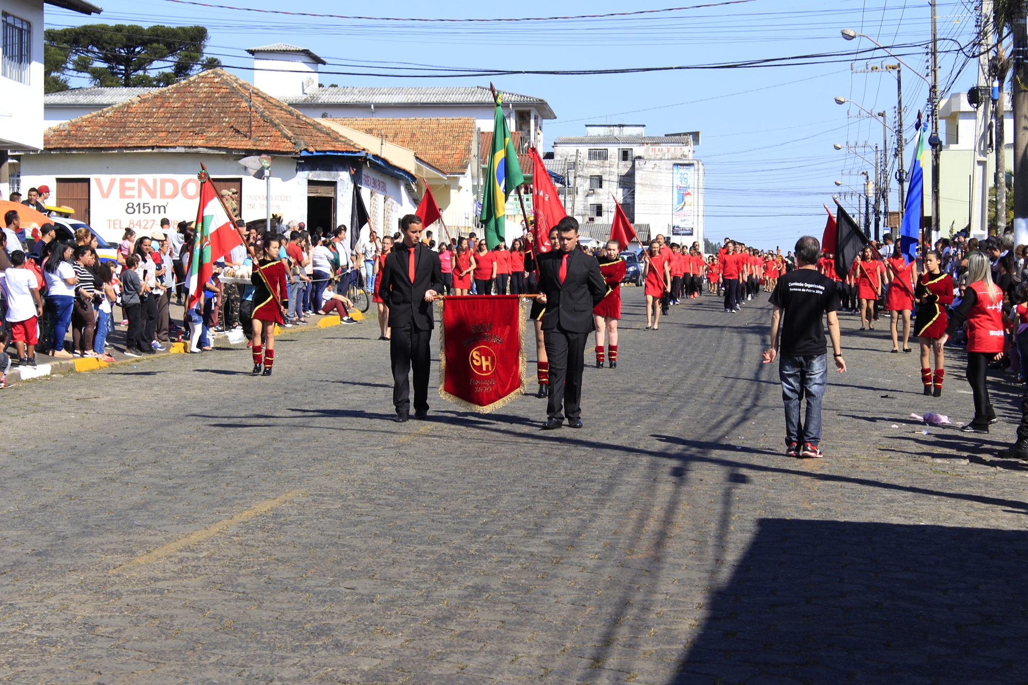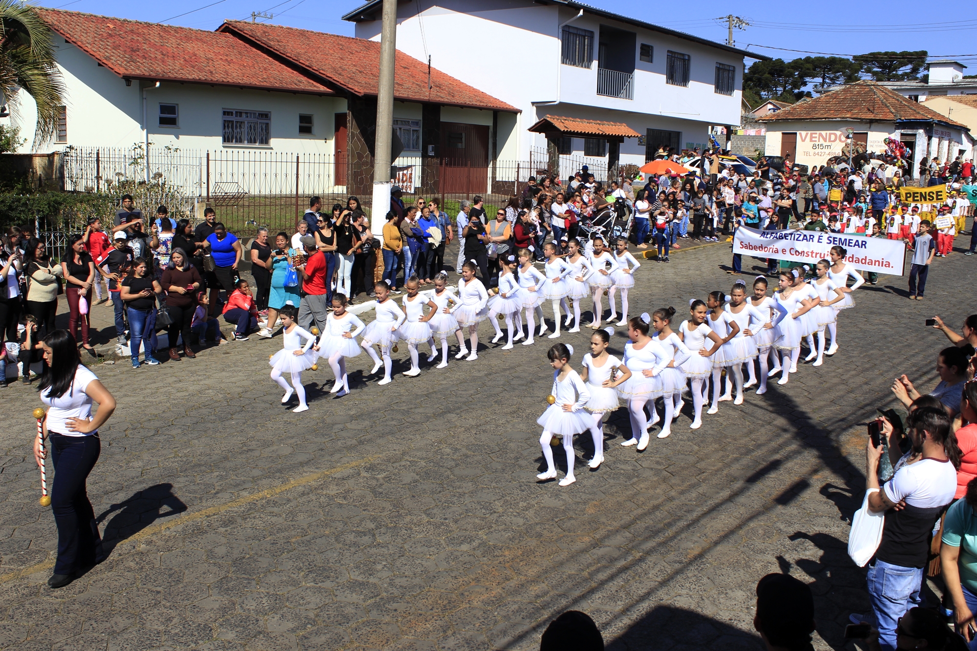 No palanque de autoridades, o prefeito Antonio Ceron, o vice Juliano Polese e a secretária da Educação, Ivana Michaltchuk, receberam representantes das forças armadas, do Corpo de Bombeiros, grupo de Escoteiros e lideranças locais. “Este é um momento de todos nós refletirmos sobre o civismo e nossa pátria. Que a juventude vivencie esta valorização nos desfiles cívicos. Não podemos apenas esperar o que a pátria pode fazer por nós, mas o que nós podemos fazer pela pátria”, enfatiza o prefeito.