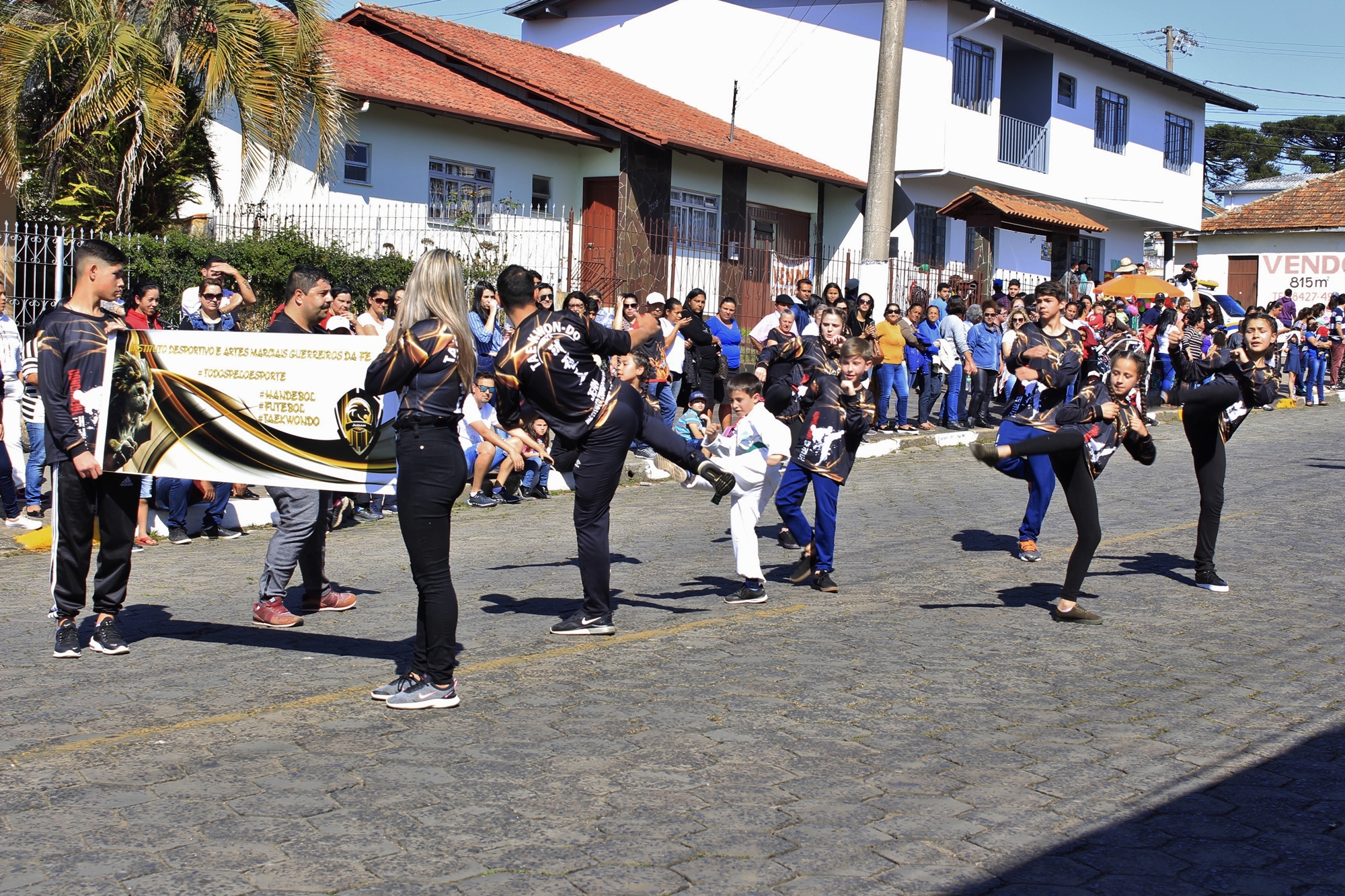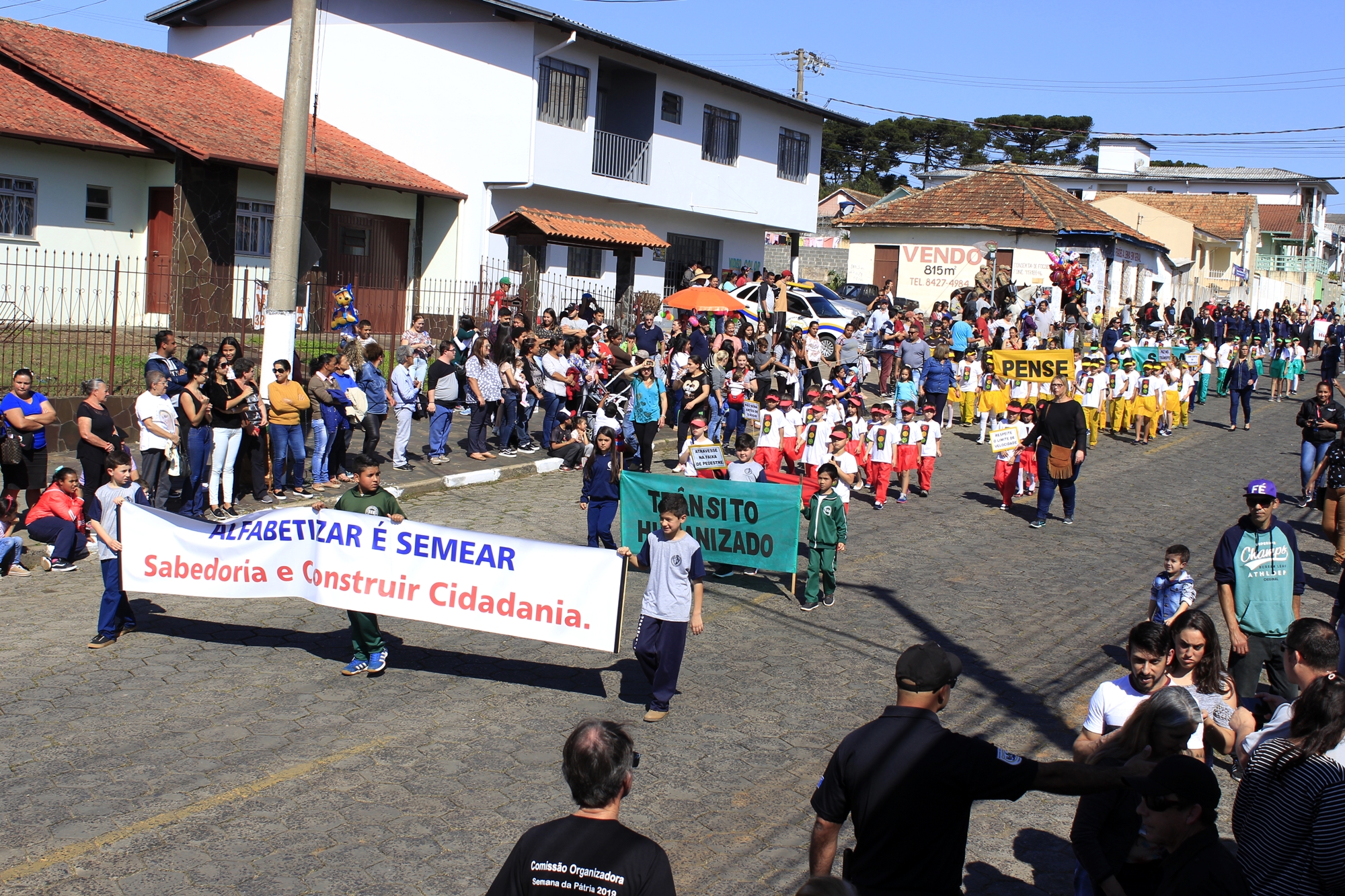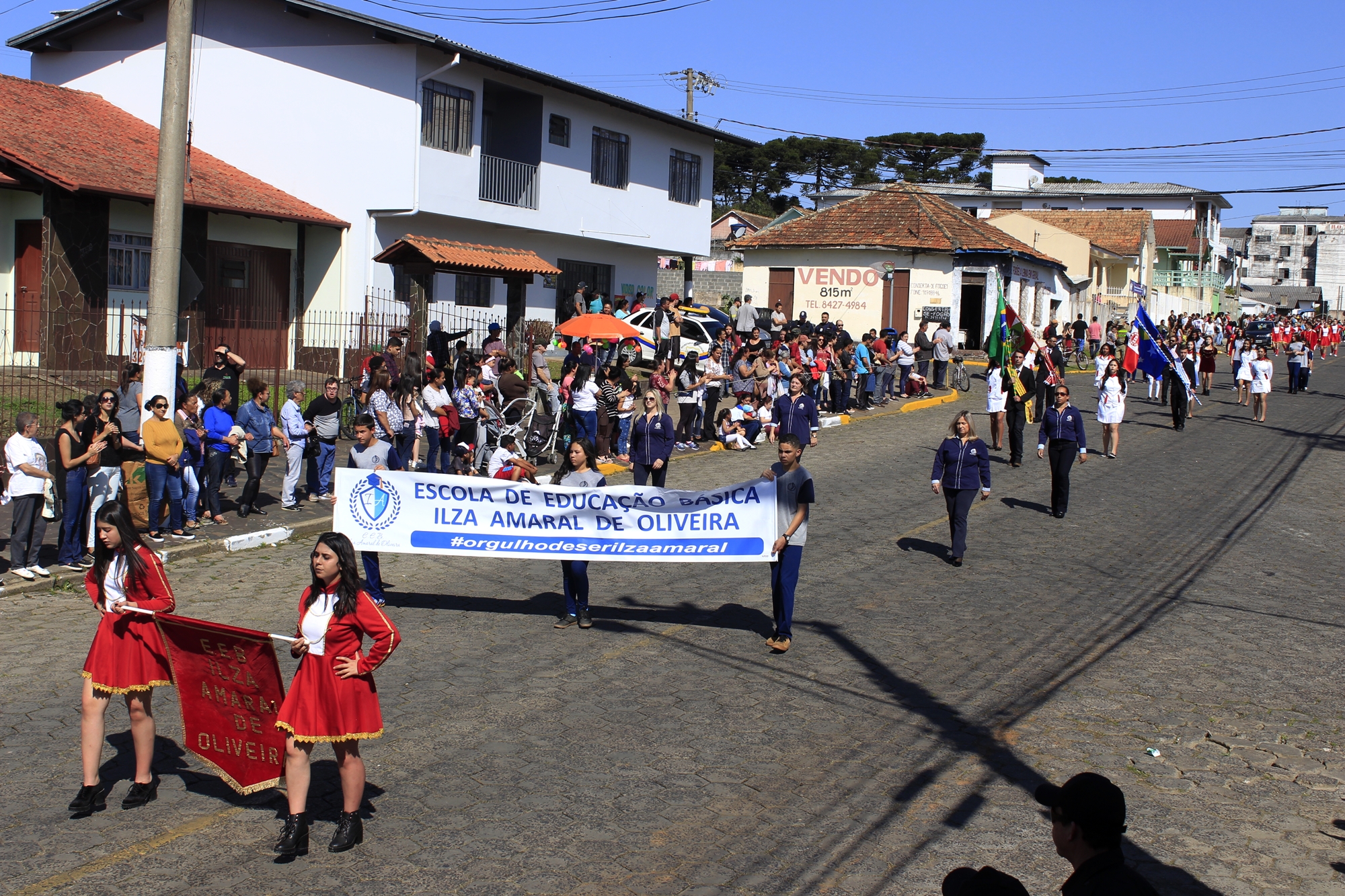 No palanque de autoridades, o prefeito Antonio Ceron, o vice Juliano Polese e a secretária da Educação, Ivana Michaltchuk, receberam representantes das forças armadas, do Corpo de Bombeiros, grupo de Escoteiros e lideranças locais. “Este é um momento de todos nós refletirmos sobre o civismo e nossa pátria. Que a juventude vivencie esta valorização nos desfiles cívicos. Não podemos apenas esperar o que a pátria pode fazer por nós, mas o que nós podemos fazer pela pátria”, enfatiza o prefeito.