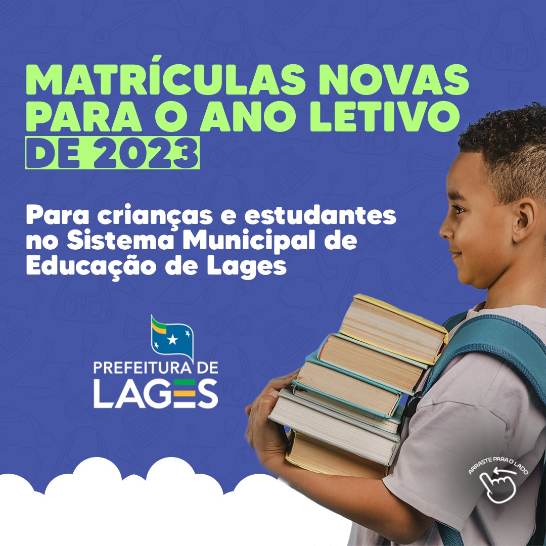 A Prefeitura de Lages, por meio da Secretaria Municipal da Educação, comunica aos pais e responsáveis legais o cronograma de matrículas para o ano letivo de 2023. O processo inicia na próxima segunda-feira, dia 17 de outubro, com a divulgação das vagas para turmas da Educação Infantil.