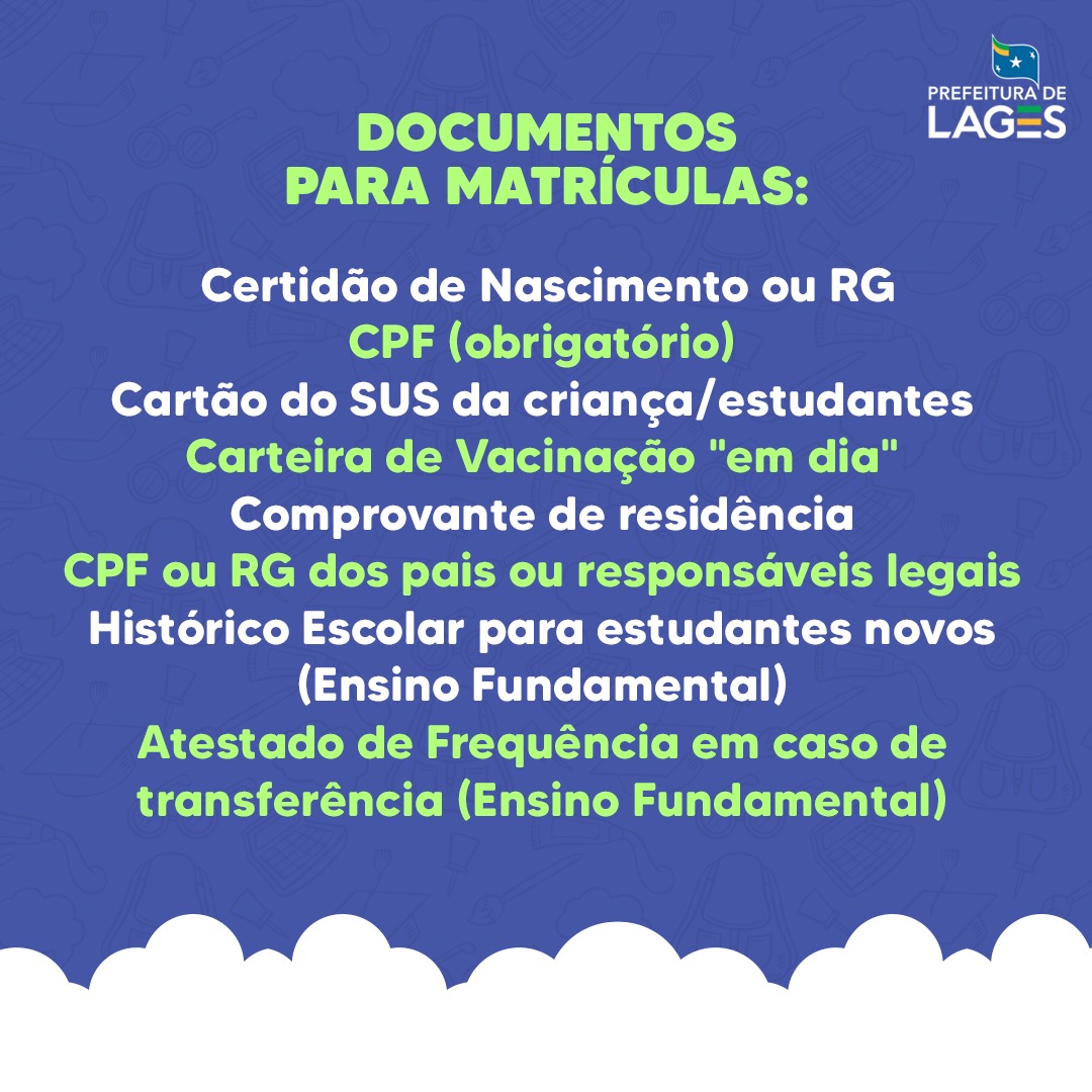 Documentos necessários para as matrículas