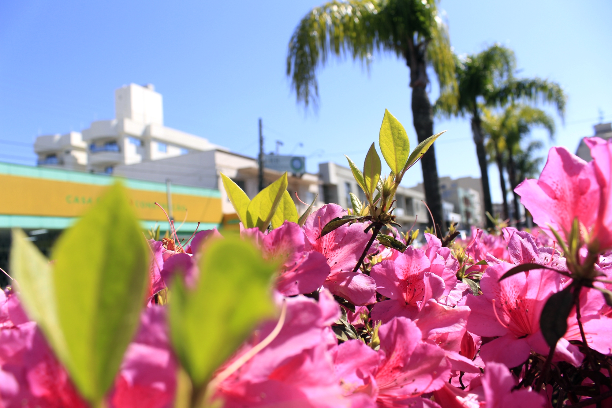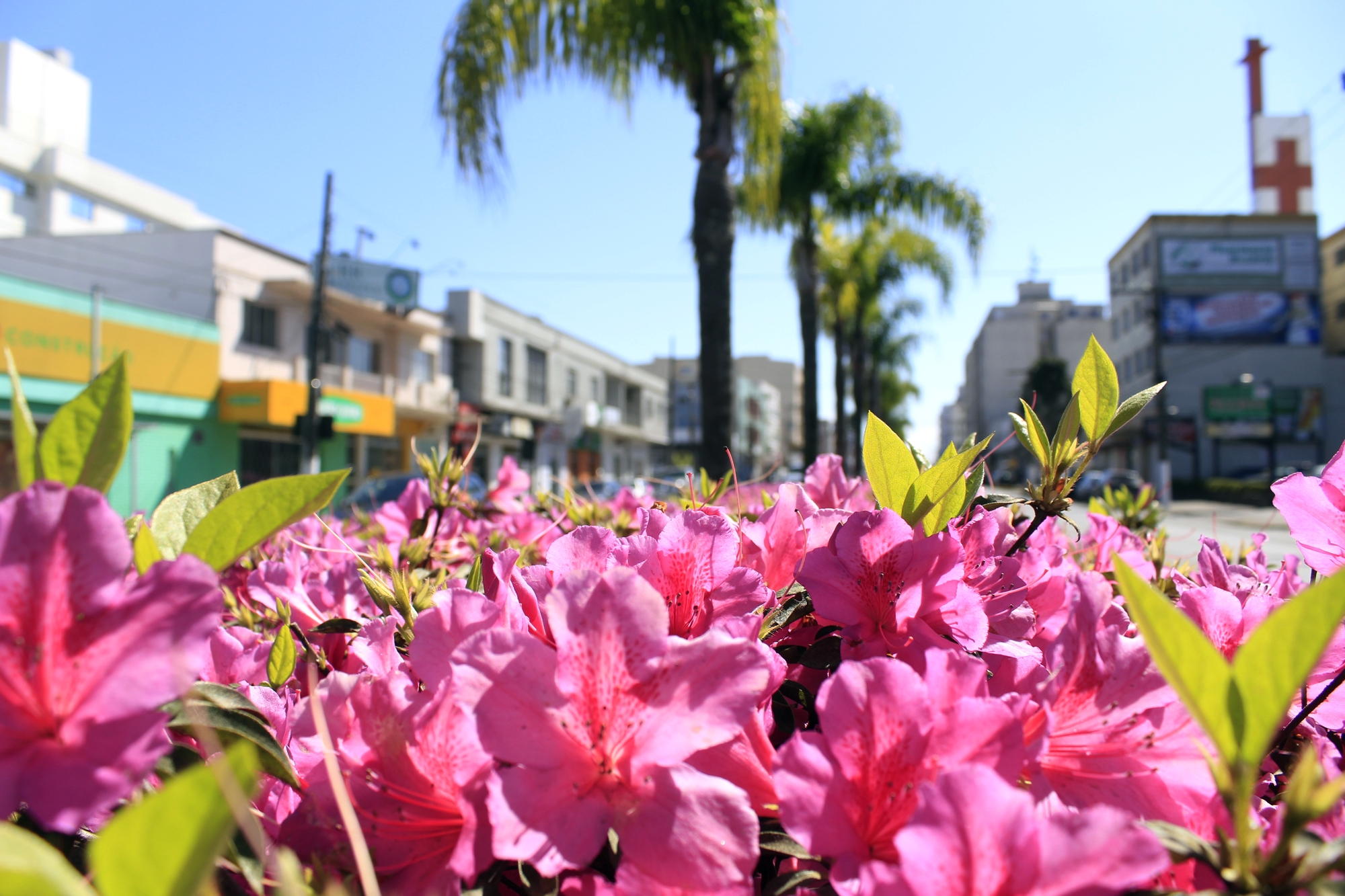 Com a chegada da primavera as flores dão o tom especial de colorido na cidade
