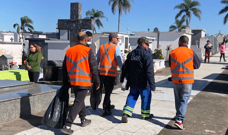 Neste dia de Finados, em que reverenciamos aos ente queridos que partiram e deixaram saudades em nossas vidas, a Prefeitura de Lages, através da secretaria de Serviços Públicos e Meio Ambiente está à postos nos cemitérios públicos da cidade – Cruz das Almas, Penha e Cemitério da Paz, no bairro Guarujá.