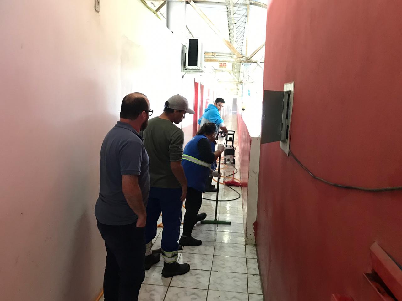 A Prefeitura de Lages, através da Fundação Municipal de Esportes e Secretaria de Serviços Públicos e Meio Ambiente, está realizando um mutirão de serviços para limpeza, reparos e adequações no Estádio Vidal Ramos Junior. O local irá receber nos próximos dias os jogos do Inter de Lages, na série B do Campeonato Catarinense de Futebol.