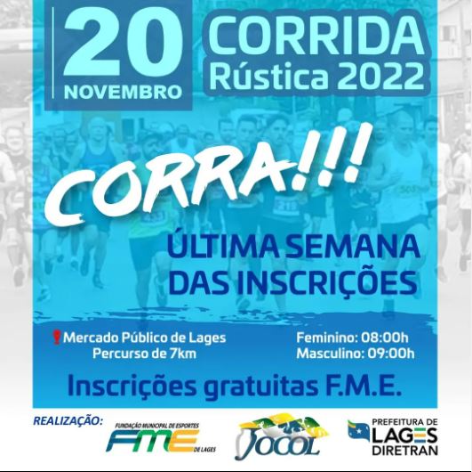A corrida Rústica do Jocol/2022 encerra as inscrições no dia 16 de novembro de 2022, e será realizada no dia 20 de novembro de 2022, com início previsto para as 08h largada Feminino e as 09h00min largada Masculino, percurso de 7.300 (sete mil e trezentos metros). Estamos entrando na última semana de inscrições da competição, portanto, não vai ficar de fora, né!
