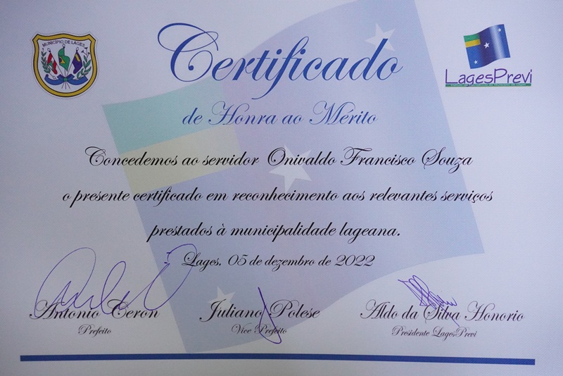 A valorização expressada publicamente, pelos serviços prestados à municipalidade e à Câmara de Vereadores e, por consequência, à população de Lages, prestigiou servidores aos quais foi atribuído o direito de aposentadoria por idade, tempo de contribuição previdenciária/serviço e invalidez permanente, no período de 1º de julho de 2019 a 1º de novembro de 2022. Durante a época da pandemia do novo coronavírus (Covid-19), em respeito às normatizações sanitárias de prevenção e combate à doença, a entrega de certificados foi inviabilizada e impossibilitada.
