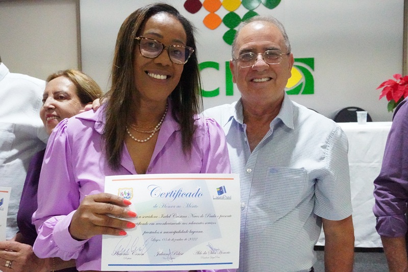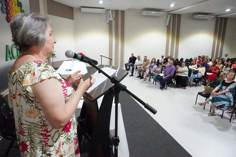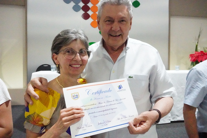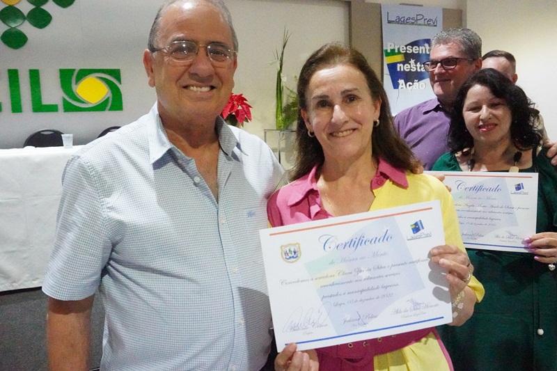 No púlpito de entrega de Certificado de Honra ao Mérito, ela dividiu um pouco de suas experiências no trabalho, aos 64 anos de idade, dos quais, 30 como colaboradora do Município. Elô está aposentada há 1,7 ano. “Com saúde física e mental é mais fácil de a gente ter planos reais. Agradeço à prefeitura pelas oportunidades de ter trabalhado em outros locais, cedida, como na Acil e Fórum Nereu Ramos, e ao LagesPrevi, por manter os pagamentos em dia, para podermos viver com tranquilidade. Grandes amigos surgem nestas andanças. Com quem eu trabalhei, aprendi mais do que eu mesma podia imaginar poder.”
