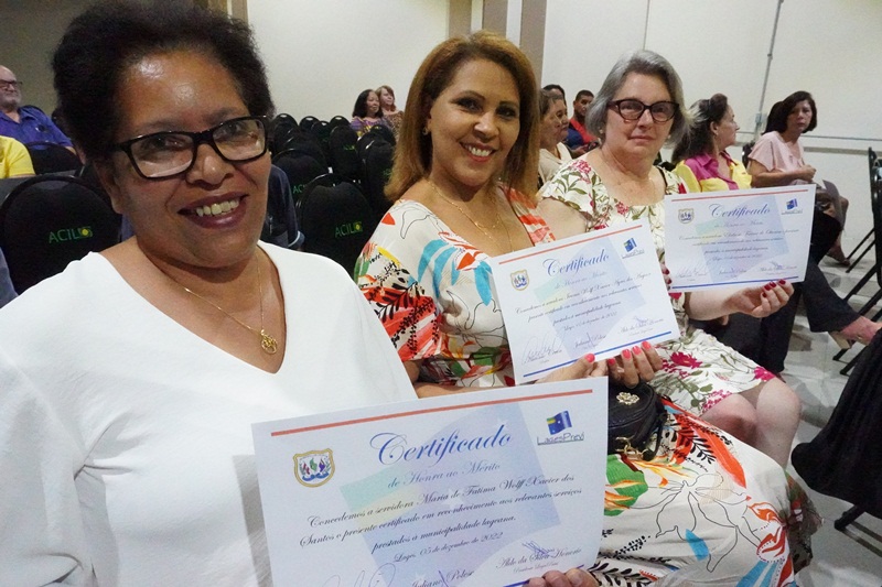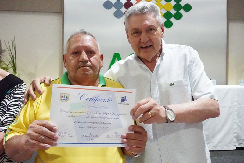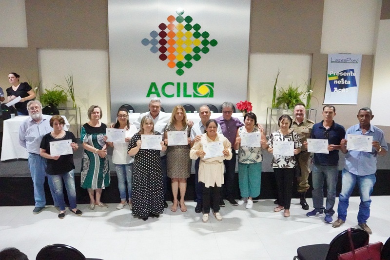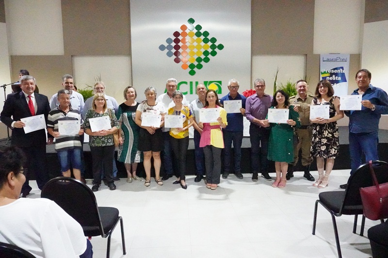 Um seleto grupo de 180 profissionais pertencentes ao quadro de funcionalismo público em diversas seções, cumpridores de seu compromisso de prestar serviços à comunidade no âmbito municipal por décadas, foram convidados e agraciados com reverência pela prefeitura de Lages, através do Instituto de Previdência do Município de Lages (LagesPrevi), e entrega do Certificado de Honra ao Mérito, em solenidade no início da tarde desta segunda-feira (5 de dezembro), no auditório da Associação Empresarial de Lages (Acil). Cerimônia de certificação acompanhada por seus familiares, amigos e admiradores, com os anfitriões - prefeito Antonio Ceron, e o presidente do LagesPrevi, Aldo da Silva Honório - e outras autoridades, como o presidente do Conselho Administrativo do Instituto, Amilton Werlich; comandante do 2º Comando Regional de Polícia Militar (CRPM), coronel Newton Fernando Ayres dos Anjos, e secretários e executivos de pastas municipais (prefeitura), os padrinhos dos aposentados nos registros desta segunda-feira. Lembra-se que houve ausências de aposentados nesta data.
