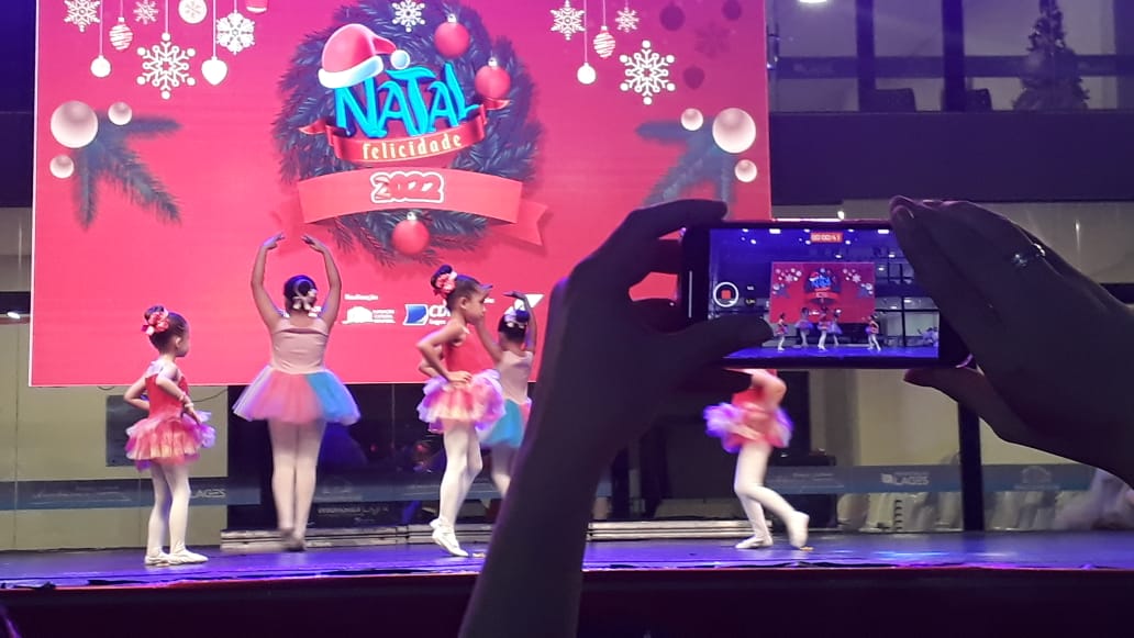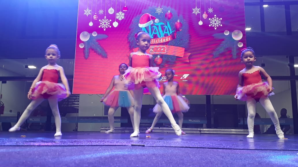 O encanto e a leveza das bailarinas, que mais parecem flutuar enquanto rodopiam, tornaram o palco do Natal Felicidade gigante na noite desta segunda-feira (12 de dezembro). Nem a forte chuva que caiu algumas horas antes atrapalhou a noite da dança, que brilhou mais uma vez como um dos principais atrativos do Natal em Lages. As bailarinas chegaram, lindas e coloridas, e fizeram a alegria dos pais e familiares que acompanhavam atentos a cada passo e aplaudiam veementes.