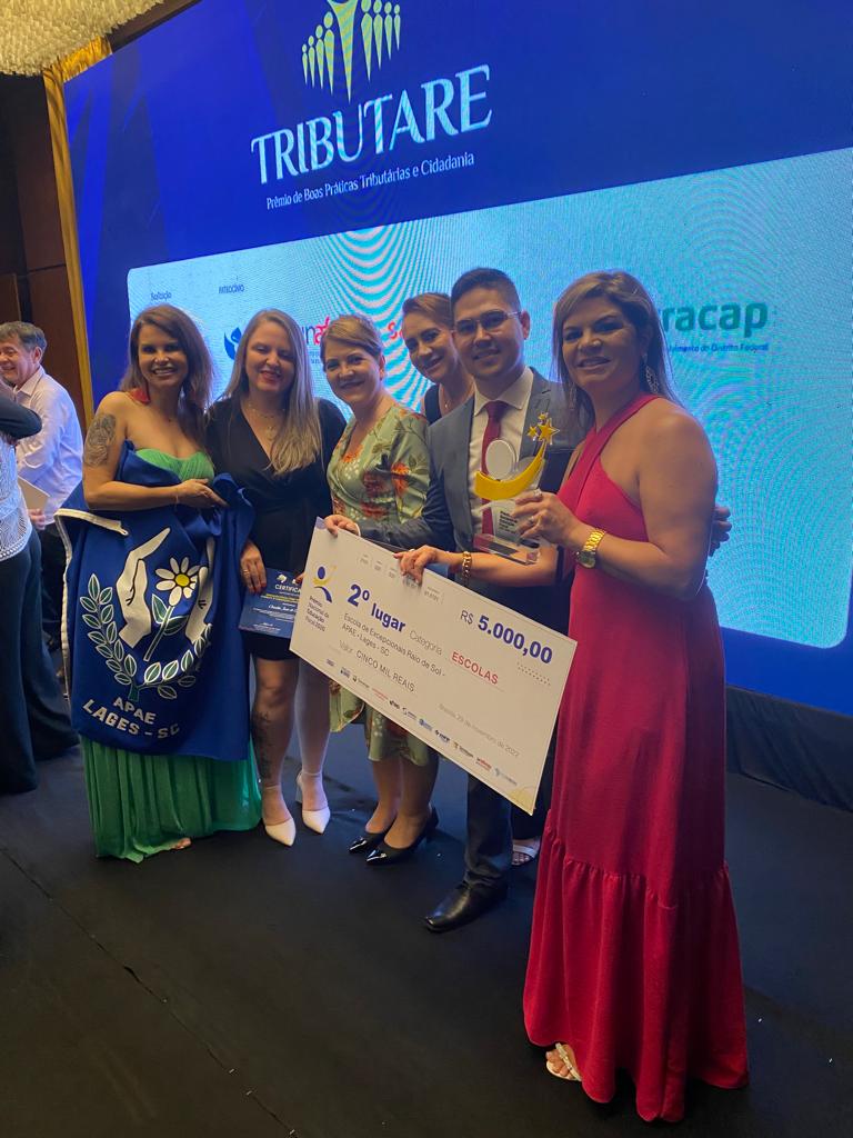 A Secretaria Municipal da Educação de Lages, juntamente com a EMEB Prefeito Waldo Costa e a APAE-Lages, que recebe orientações e formações pela SMEL no que trata da Educação Fiscal, foram finalistas do Prêmio Nacional da Educação Fiscal - edição 2020, nas categorias: instituição e escolas. A cerimônia de premiação aconteceu no dia 29 de novembro de 2022, na Embaixada de Portugal, em Brasília (DF), estiveram presentes a secretária municipal da Educação, professora Ivana Michaltchuk, o coordenador do programa, professor Cristian de Oliveira e também as professoras, Leila Aparecida Moreira e Claudia Jane de Oliveira, representantes da EMEB.