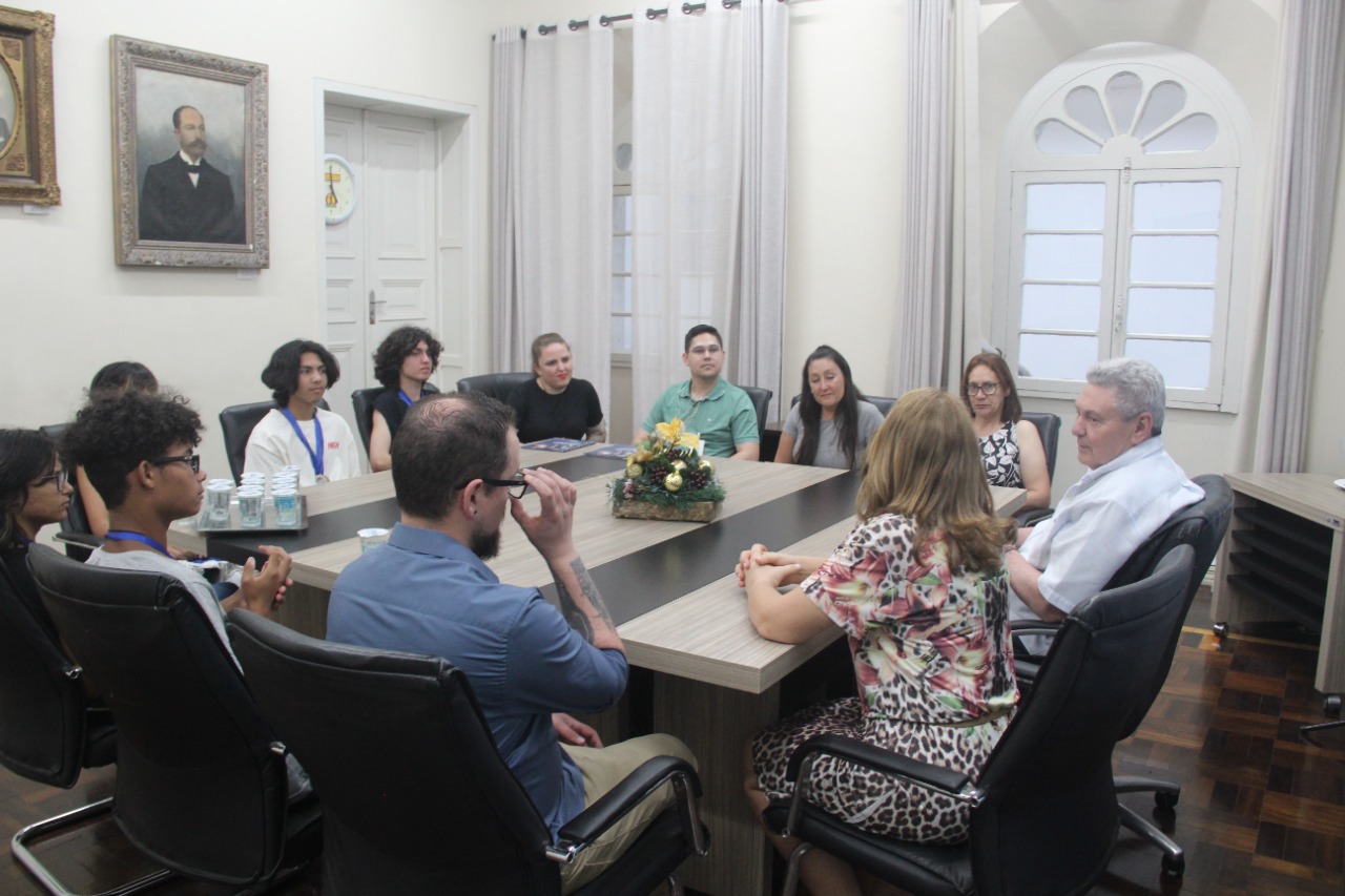O prefeito, Antonio Ceron, recebeu em seu Gabinete, na tarde desta segunda-feira (12 de dezembro), a secretária municipal da Educação, professora Ivana Michaltchuk, os estudantes da Escola Municipal de Educação Básica (EMEB) Izidoro Marin, localizada no bairro Caroba, vencedores da Olimpíada Brasileira de Geografia e Ciências da Terra, que participaram da etapa estadual e nacional. Também estiveram presentes professores e diretores finalistas do Prêmio Nacional da Educação Fiscal - edição 2020.