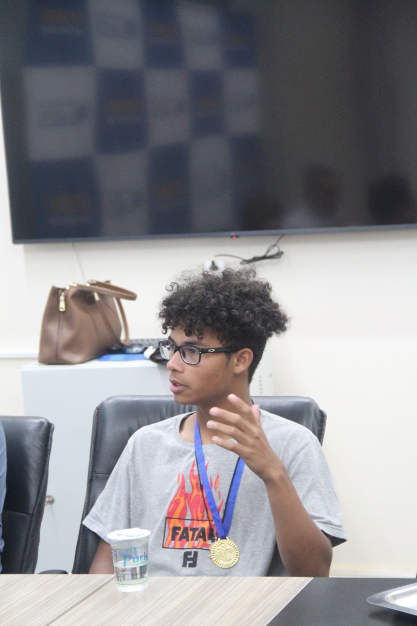 O prefeito parabenizou os estudantes pela conquista inédita para o Sistema Municipal de Educação de Lages. Na etapa estadual os estudantes, Erick Alerrandro, Kauane Inácio e Kauan Oliveira, que contaram com o auxílio dos estudantes Samuel Levi do 9º ano e Erica Leticia do 8º ano receberam medalha de ouro. A preparação dos estudantes da EMEB Izidoro Marin foi feita pelo professor de geografia, Rafael Tizatto, com apoio da equipe diretiva da unidade de ensino, representada pela diretora Carolina Tadielo.