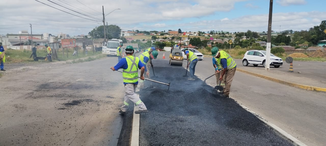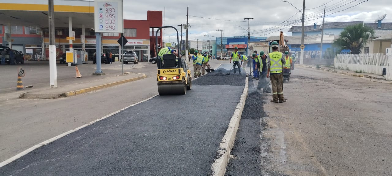 Equipe de serviços da Prefeitura de Lages trabalha na implantação de ciclofaixa na avenida 31 de Março, no bairro Guarujá