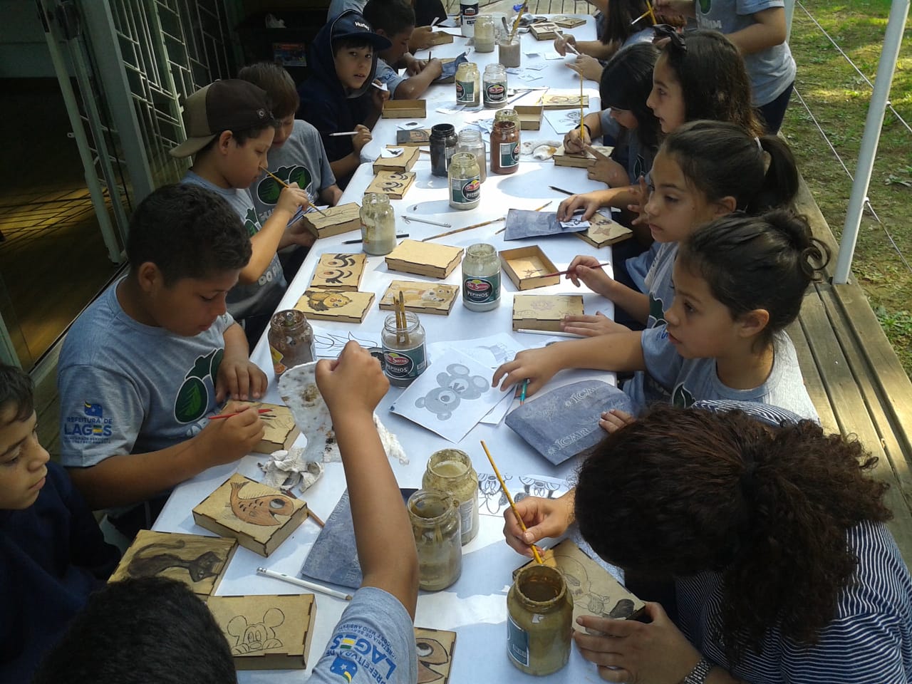 As especialistas trabalharam este tema e depois executaram a oficina Cores da Terra, ensinando as crianças a técnica de produzir tinta a partir do material do solo, com tipos e tonalidades distintos, misturando-se água e cola. Os alunos ganharam caixas de MDF e pintaram aos objetos e os levaram para suas casas, uma forma de aprendizagem de uma arte fora da sua rotina normal. “Trata-se de uma tinta de custo barato para fabricação e dá para pintar muro, fazer artesanato e decoração”, salienta a gerente de Educação Ambiental da Secretaria de Serviços Públicos e Meio Ambiente, bióloga Michelle Pelozato. Este foi o resgate de conhecimentos tradicionais sobre técnicas de extração e produção de tintas com pigmentos, base e aglutinantes naturais para a pintura de edificações e peças de artesanato, aperfeiçoamento das técnicas e treinamento para a produção e aplicação.
