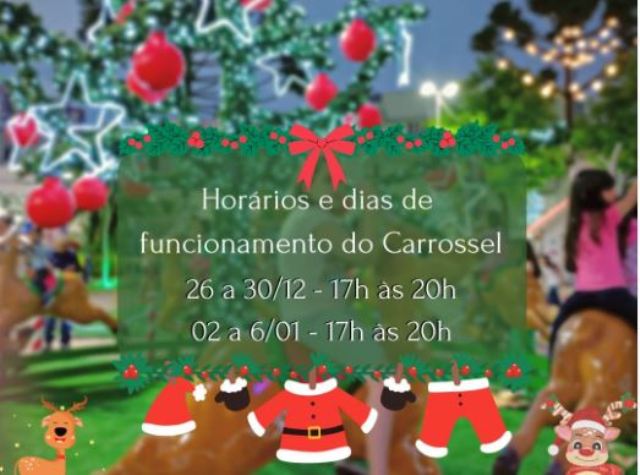 Veja os horários de funcionamento do Carrossel do Natal Felicidade, localizado no Calçadão da Praça João Costa:
