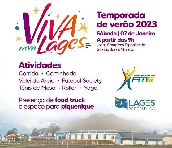Está aberta a temporada de verão e o Viva Lages 2023 promete! Dia 07/01 no Complexo Esportivo Jones Minosso vai ocorrer uma série de atividades com a presença de Food Truck e espaços para piquenique.
