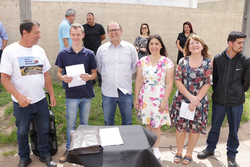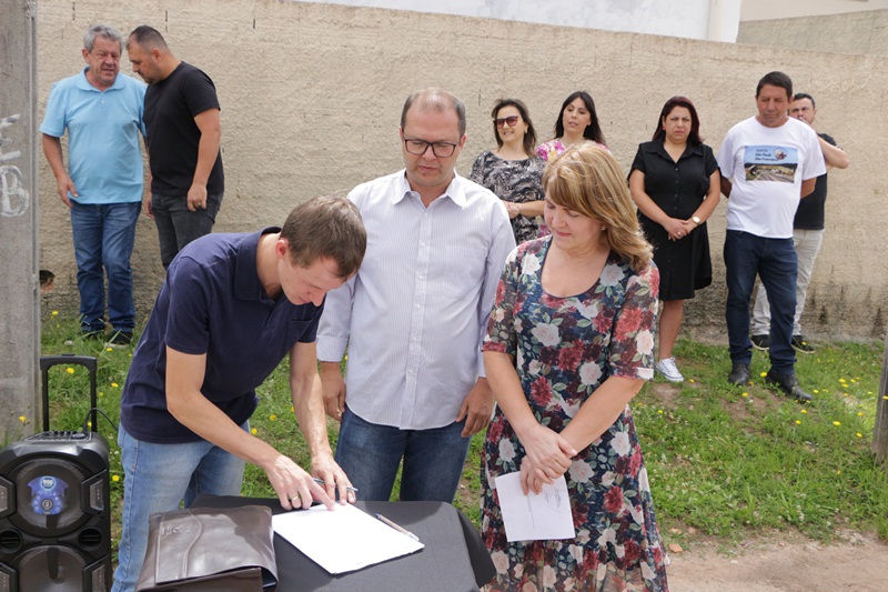Na manhã desta segunda-feira (9 de janeiro) o prefeito em exercício Juliano Polese, juntamente com a secretária municipal da Educação, a professora Ivana Michaltchuk, e demais autoridades, entregaram para os representantes da empresa vencedora da licitação, a ordem de serviço que autoriza a construção da nova quadra poliesportiva coberta na Escola Municipal de Educação Básica (EMEB) Professor Eduardo Pedro Amaral, no bairro São Francisco.