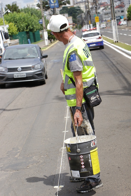 Os serviços são executados com a restauração da sinalização horizontal (pintura das faixas de rolamento e faixas de pedestres). O objetivo é reforçar a segurança no trânsito para motoristas e pedestres, além de contribuir com a mobilidade urbana.