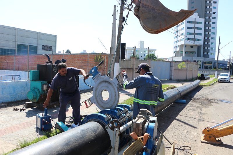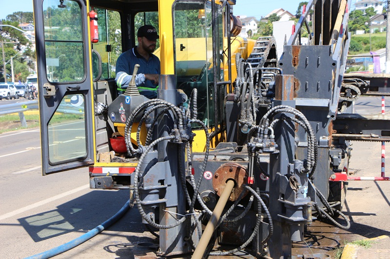 O prefeito em exercício, Juliano Polese, vistoriou, na quarta-feira (25), as obras de implantação de rede de esgoto no trecho da sinaleira de entroncamento entre as avenidas Belizário Ramos (Carahá) e Duque de Caxias. Este serviço é executado por meio da Secretaria de Águas e Saneamento (Semasa) e empresa contratada. Após sua conclusão, possibilitará a coleta do esgoto na região dos bairros Passo Fundo nas imediações do 1º Batalhão Ferroviário, do Frei Rogerio e parte do bairro Guadalupe. A forma de trabalho no local segue sendo por meio do método não destrutivo. São 80 metros de rede.