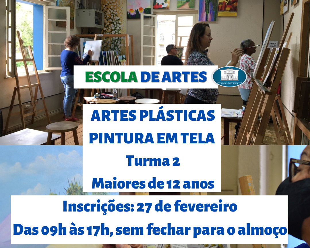 Pintura em Tela (Turma 2) – Maiores de 12 anos de idade, inscrições no dia 27 de fevereiro.