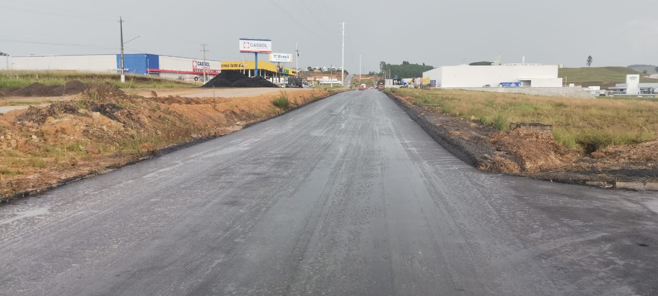 Neste determinado trecho foi realizado a terraplenagem, implantação de macadame (base de pedra), compactação e a implantação da camada asfáltica
