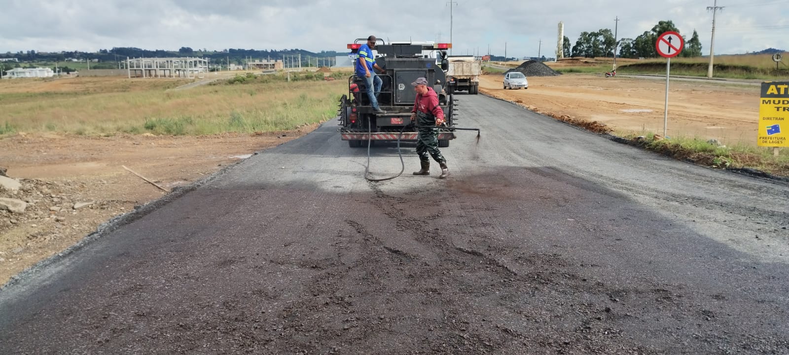 Trecho da avenida das Torres, no bairro Guarujá, é asfaltado pela Prefeitura de Lages