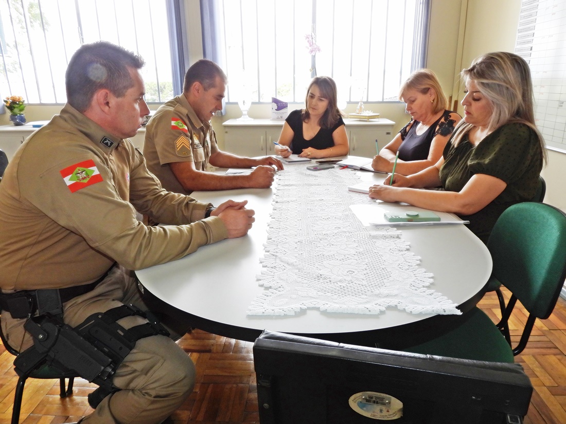 A Secretaria Municipal da Educação de Lages renovou a parceria com o 6º Batalhão da Polícia Militar (6º BPM), para continuar levando às escolas públicas municipais o Programa Educacional de Resistência às Drogas e à Violência (Proerd). A diretora de Ensino e as coordenadoras da Educação Infantil e do Ensino Fundamental e Médio da Secretaria, professoras Andressa Alano Alves, Marenilce Rodrigues Cardoso e Lúcia Helena Matteucci, representando a secretária Municipal da Educação, Ivana Michaltchuk, receberam policiais militares para discutir o assunto. Participaram da reunião o 2º sargento Paulo da Silva Ribeiro, responsável pelo Proerd na região do 6º BPM e o cabo Anderson Damasco, instrutor do programa.