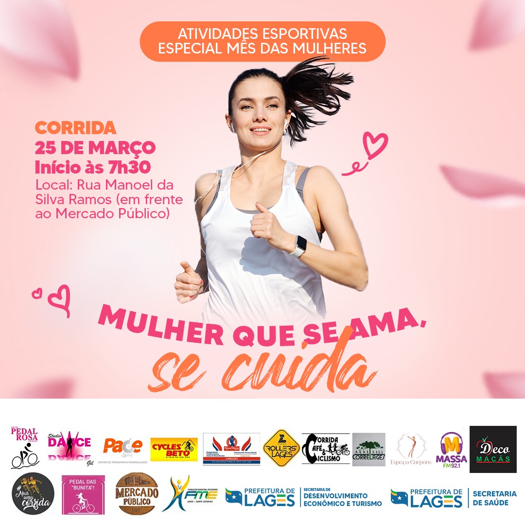 A Prefeitura de Lages, por meio da Secretaria de Desenvolvimento Econômico e Turismo, Fundação Municipal de Esportes, Mercado Público e Secretaria Municipal da Saúde promoverá neste sábado (25 de março), das 7h30 às 12h uma ação especial, denominada “Mulher que se ama, se cuida”.