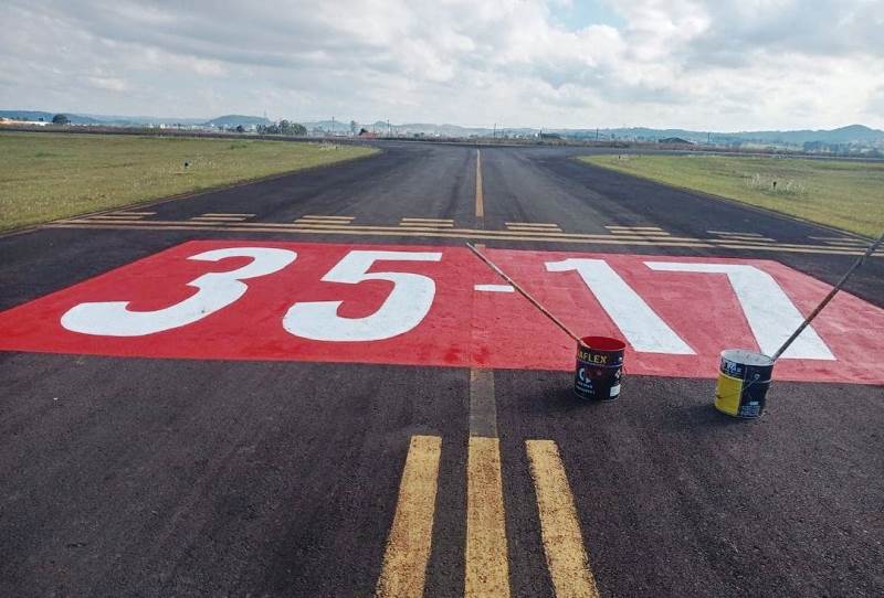Nas múltiplas atividades do setor de Engenharia de Trânsito da Diretran, nesta semana, destaque especial para a restauração da sinalização do Aeroporto de Lages, feito ontem, terça-feira (28).