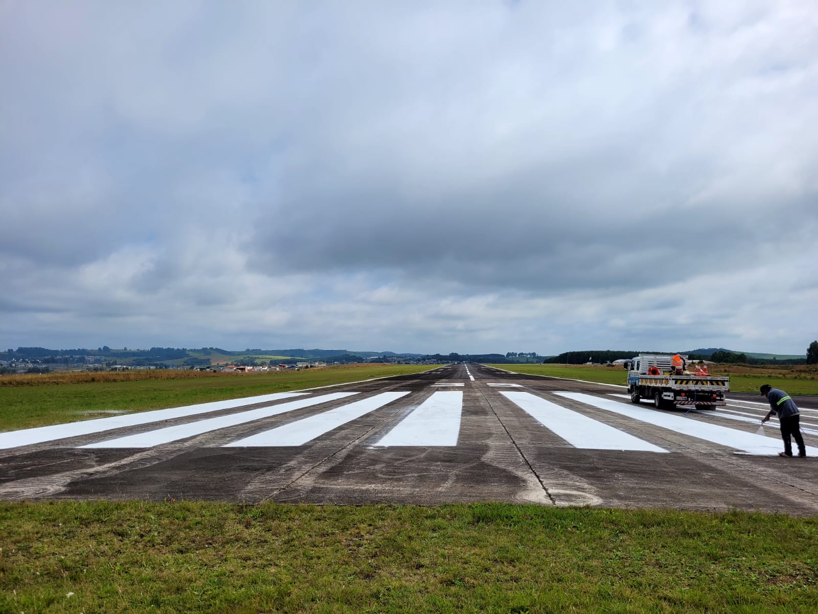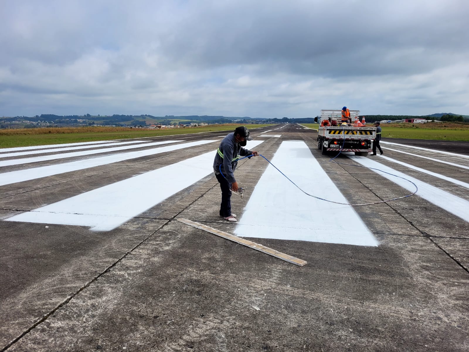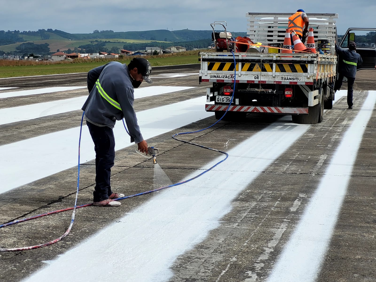 Aeroporto Federal de Lages recebe pintura na pista e pátio de estacionamento