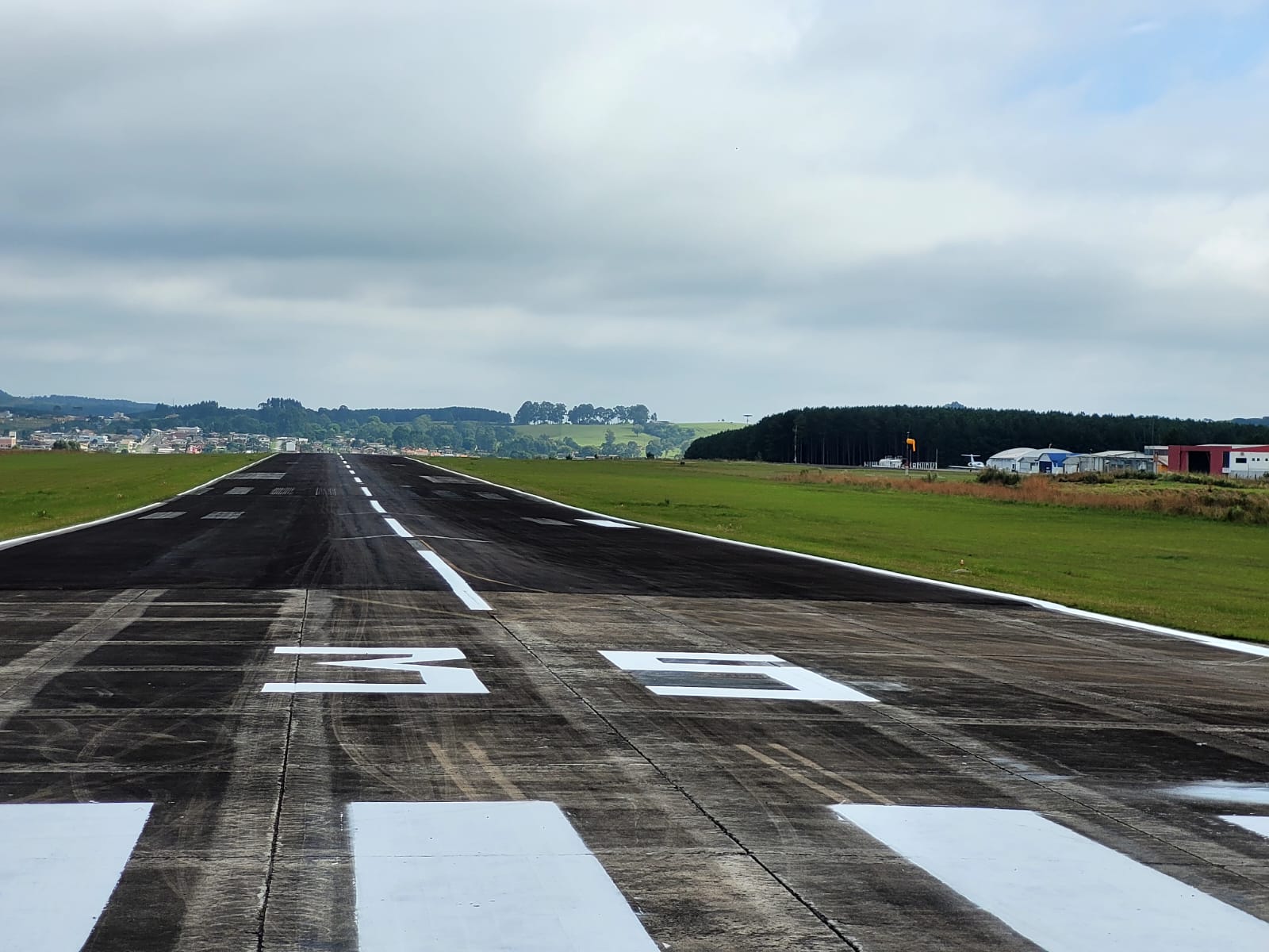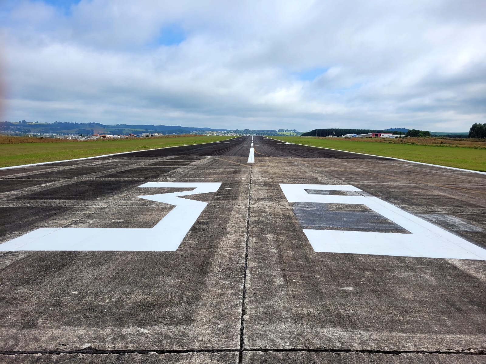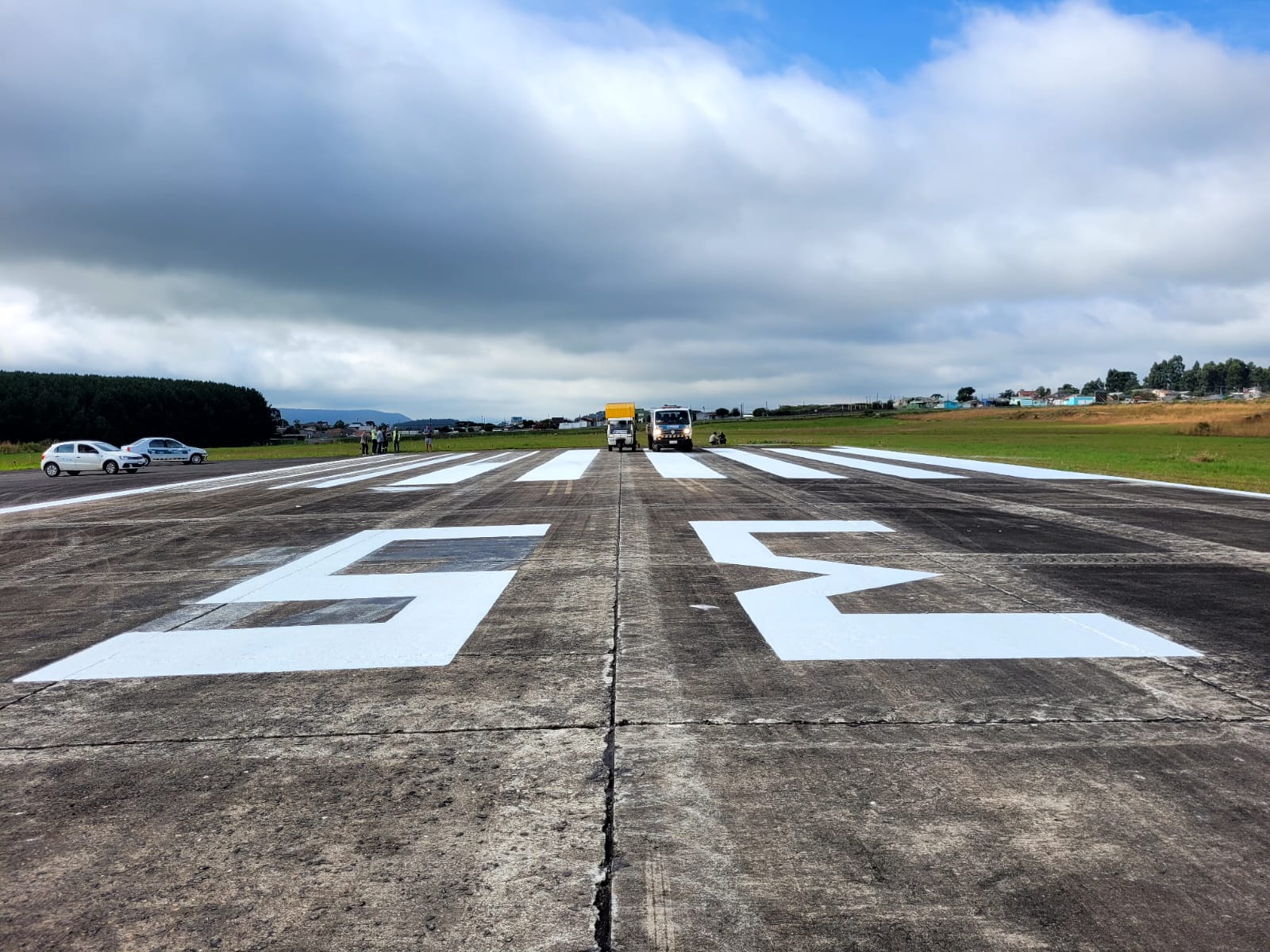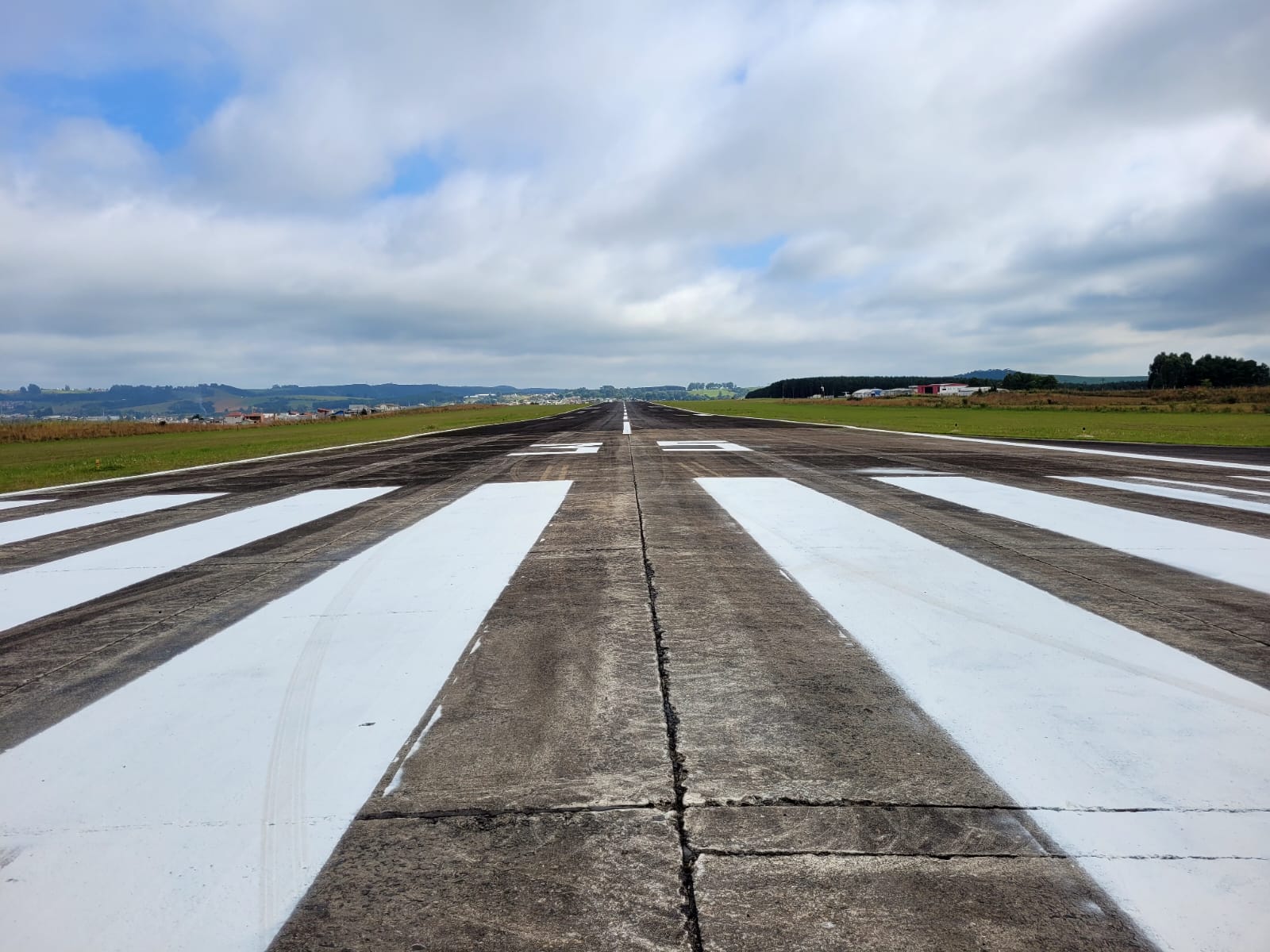 Aeroporto Federal de Lages recebe pintura na pista e pátio de estacionamento
