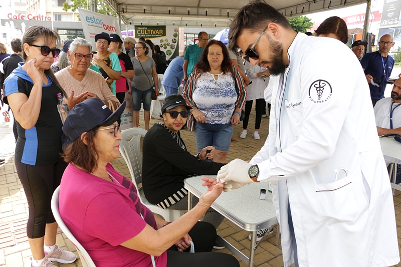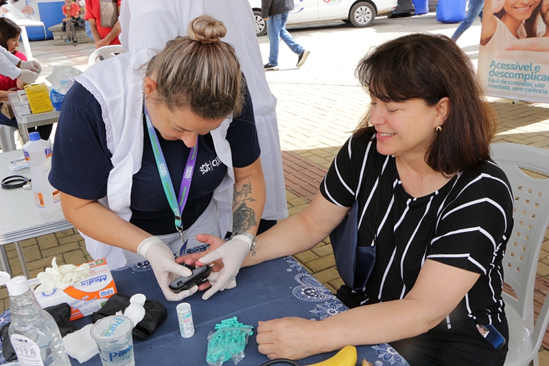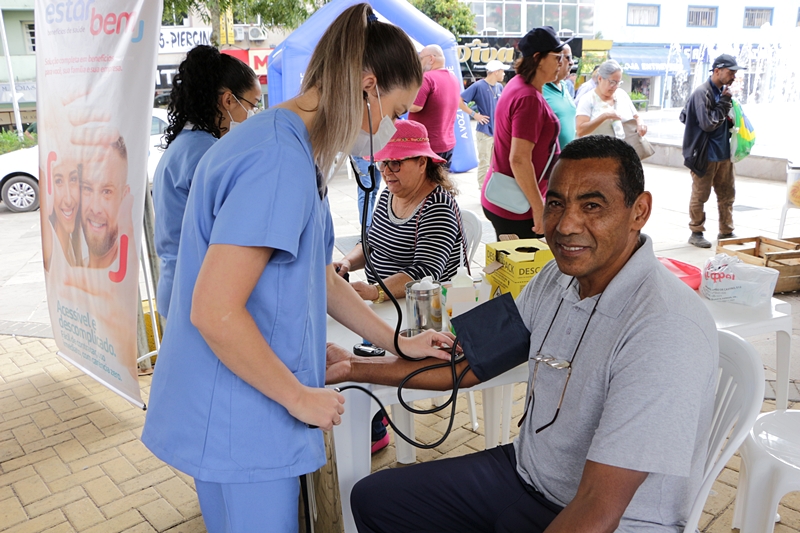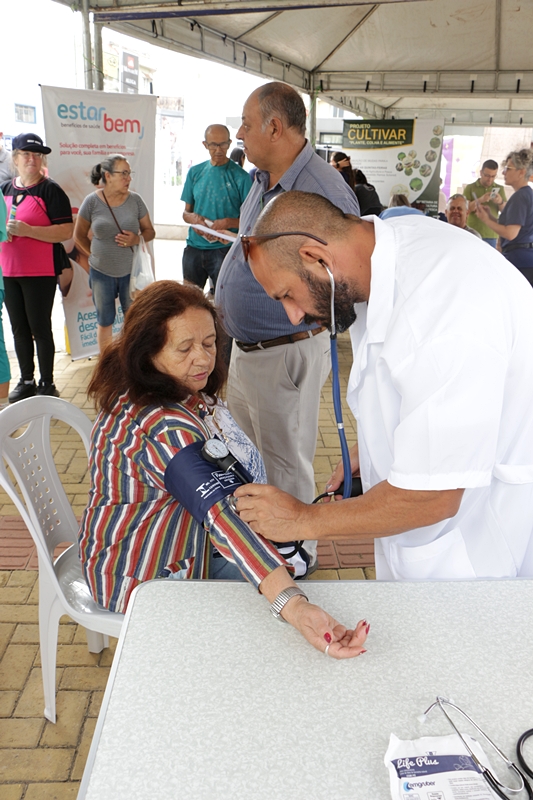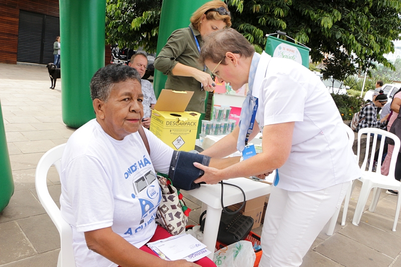 A senhora Geni Araújo, 62 anos, moradora do bairro Copacabana, estava passando pelo Centro quando avistou a movimentação no calçadão. “Aproveitei para medir minha pressão e descobri que estava alta. Muito boa ação, e que sirva de alerta pra gente se cuidar mais”, comenta.