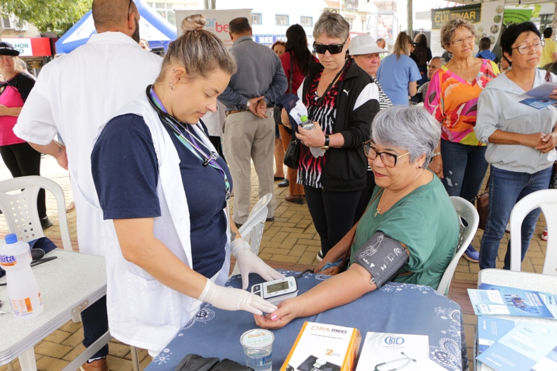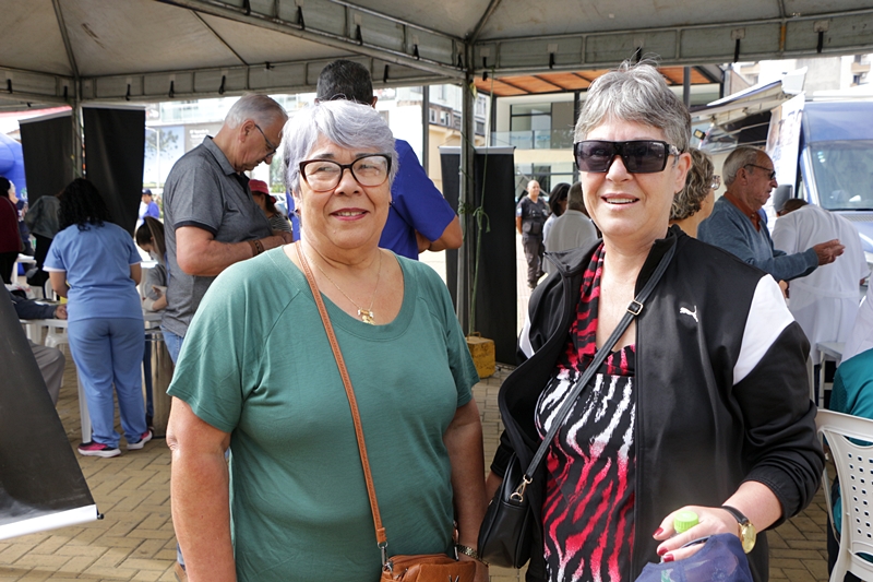 As amigas Cleuza Aparecida Kuhnen, de 56 anos, e Ruth Arruda Ciuchetta, 68, fazem parte do grupo de ginástica da terceira idade do bairro Petrópolis e vieram prestigiar o evento. “Somos muito ativas, a saúde está em dia, mas sempre vale a prevenção. Nunca é demais medir a pressão arterial e a glicose de vez em quando”, brincam.