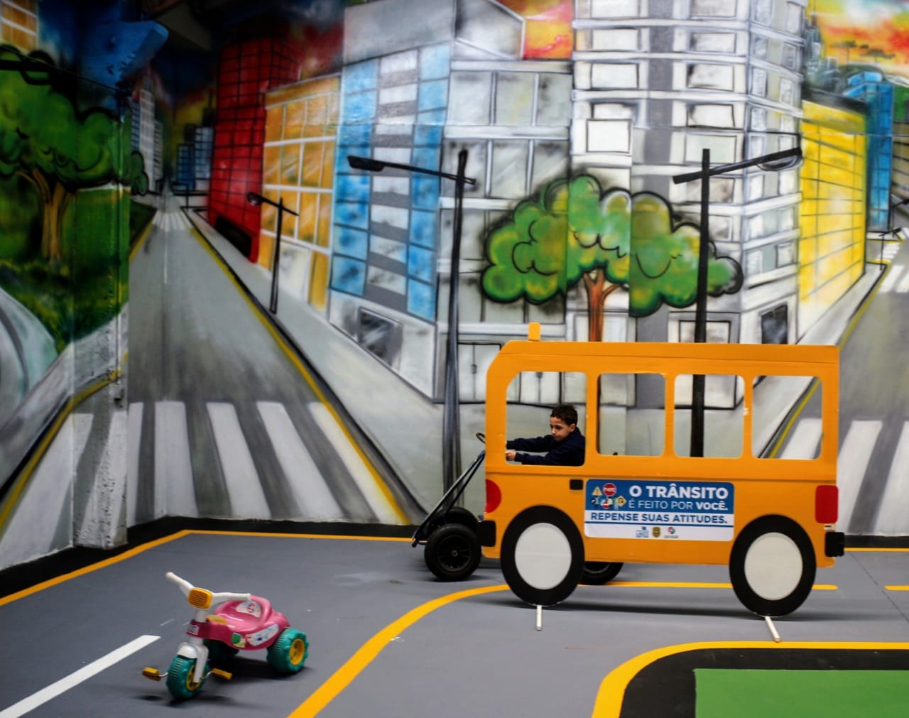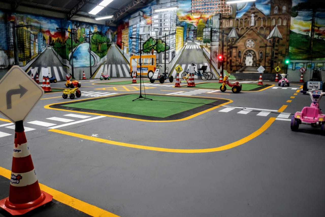 A nova pista de 225 metros quadrados está implantada em um cenário urbano, criado através da arte grafite, em uma dimensão panorâmica 3D. A nova pista é composta de faixa de pedestre, redutor de velocidade, semáforo (sinaleira), com vias sinalizadas por placas e cones. Carrinhos e “motoquinhas” são utilizadas para o circuito interno educativo.