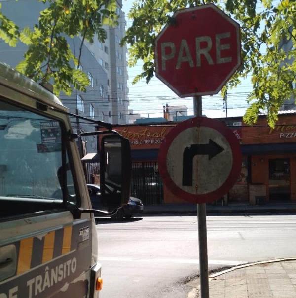 Ressaltamos a importância da parceria com a comunidade, onde muitas vezes somos informados de falta ou avaria de sinalização. E, deste modo, podemos dar uma resposta rápida e efetiva como essas sinalizações feitas na Rua Lauro Muller (placa) e na Rua Portugal (lombada).