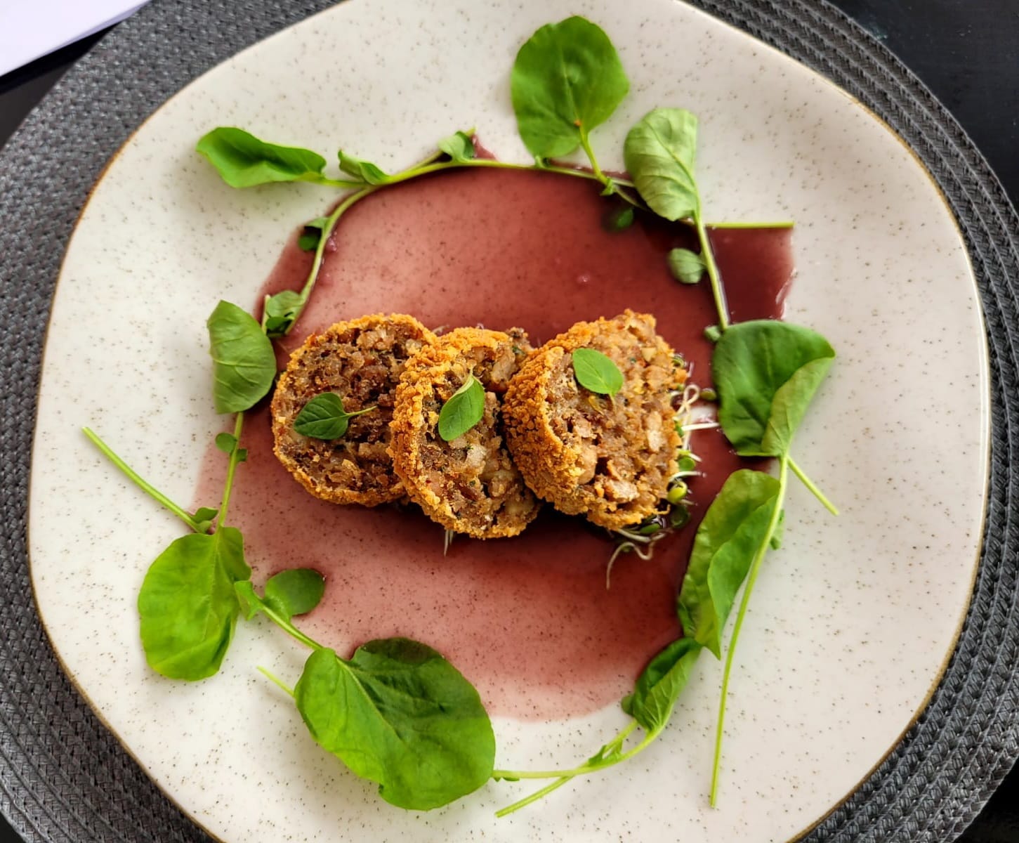 2º lugar: Onéris Adilson Lopes. Prato: Croquete de linguiça campeira com pinhão. Prêmio: R$ 500,00 em vale-compras do Fort Atacadista.