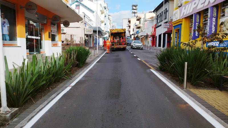 Assim, o sábado, domingo e segunda-feira (feriado), foi dia de trabalho para as equipes da Engenharia de Trânsito, que procederam a pintura nas vias centrais, principalmente nas faixas de pedestres e na marcação das faixas de veículos.