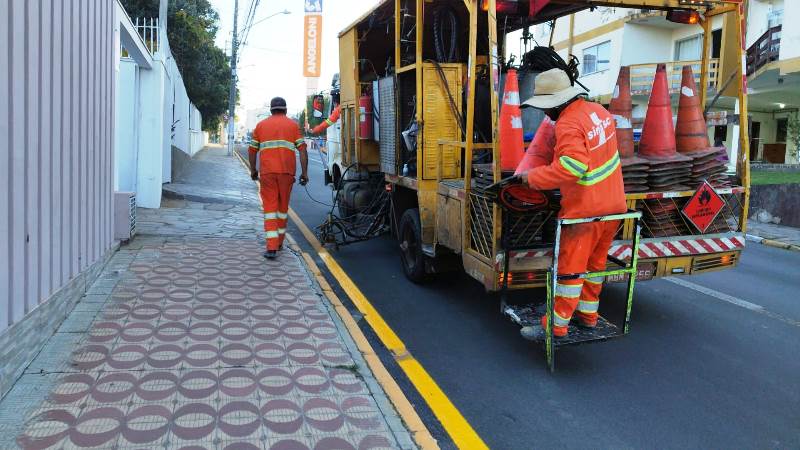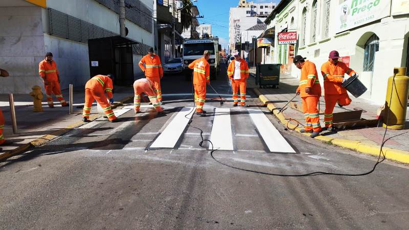 Aproveitando o baixo fluxo de veículos em circulação no Centro da cidade durante o feriadão de 1° de Maio, a Diretran aproveitou para fazer o reforço da sinalização em algumas das vias públicas, principalmente na questão da pintura.