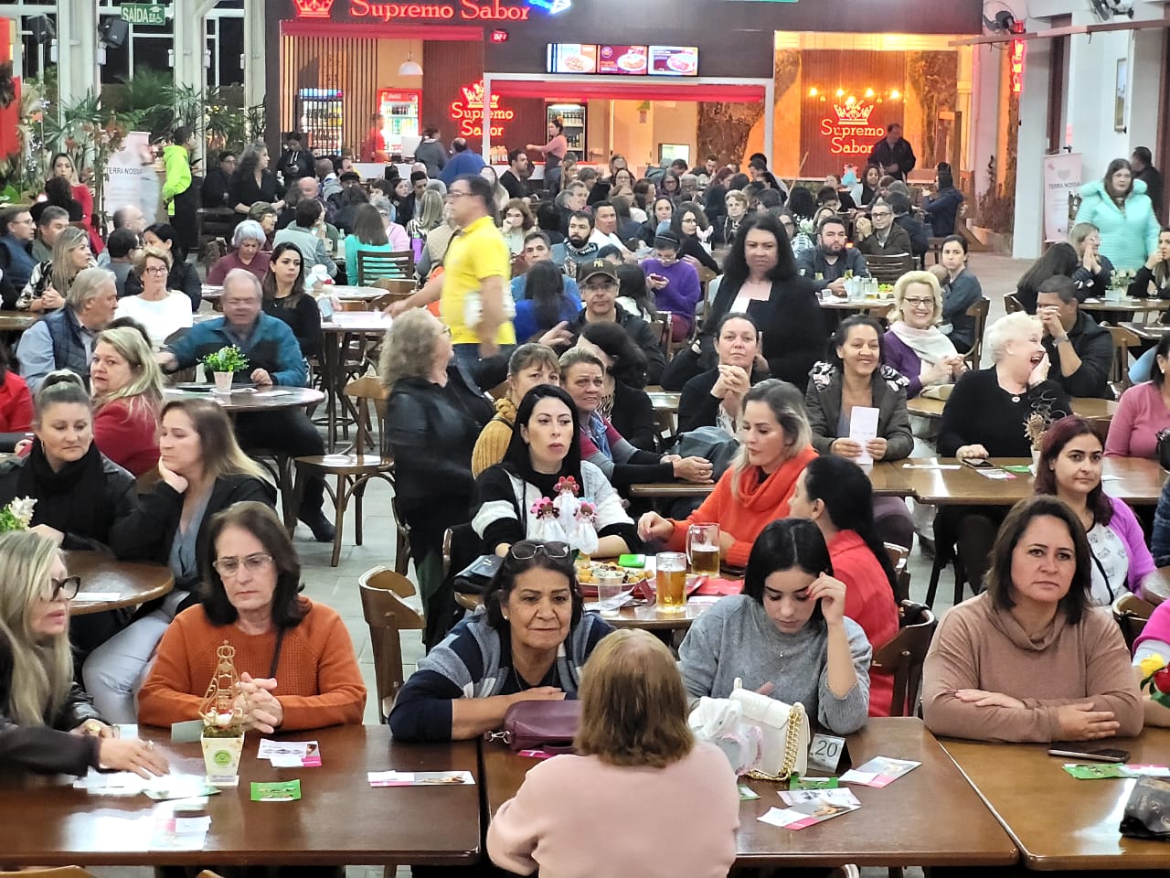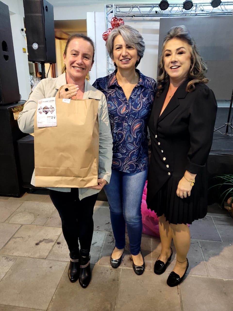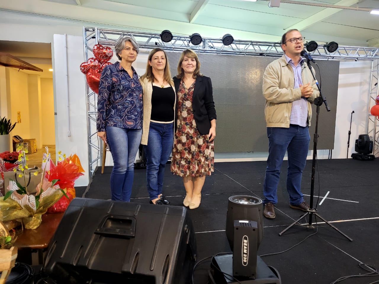 Entre os brindes entregues na noite desta segunda-feira (8 de maio) estavam extensão de cílios, por Estúdio Rosane Machado; limpeza de pele, por Studio Naiara Matos; duas sessões de massagem relaxante, por Clínica de Estética Magrass; produtos Mary Kay, por Naiara Ventura; detox e avaliação personalizada gratuitos, combos com desconto (spa em dobro) e vale presente, por Clínica Estética Virtuosa; um bolo de Dia das Mães, por Janine Bolos e Doces; um bolo, por Armazém Vida Livre; duas cestas de itens pastifícios e dois pães, pelo box da Agricultura Familiar; um vaso de flores, por Floricultura Sequoia, e artigos de artesanato doados pelas quatro unidades da loja Terra Nossa.