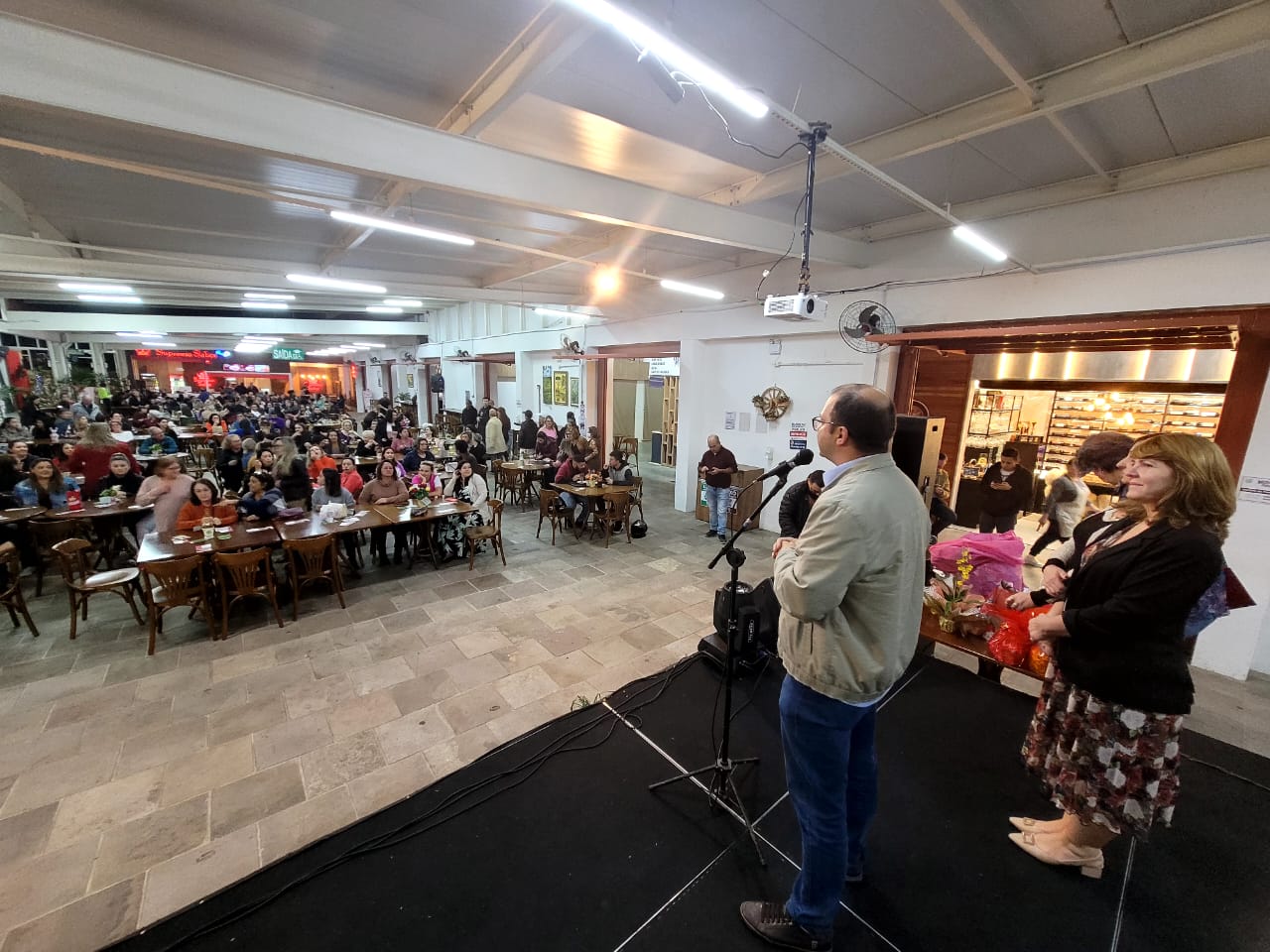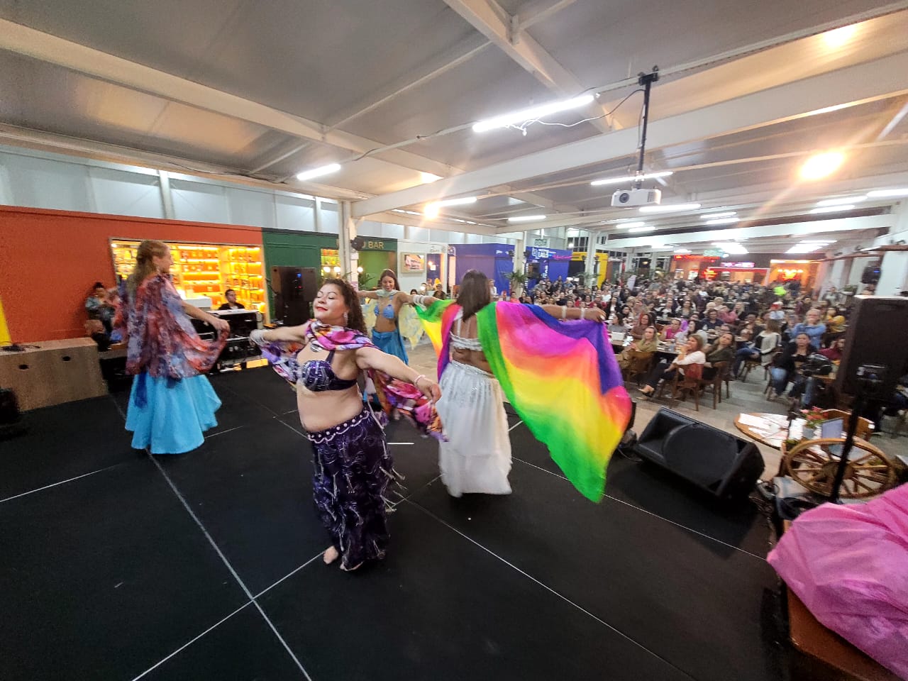 As mulheres rendidas à maternidade estão ganhando um presente da prefeitura de Lages. Na noite desta segunda-feira (8 de maio), a seis dias de distância do Dia das Mães, o público lageano celebrou a abertura do conjunto de eventos da “Semana das Mães no Mercado Público”, organizado e promovido pela prefeitura. Centenas de espectadores contemplaram os espetáculos de dança do ventre, pelo Grupo Nageena, e de dança cigana, com Teodora Cardoso, o show de Dani Porto Trio Covers e sorteio de brindes/vouchers doados por empresas apoiadoras e de boxes do Mercado, distribuídos nos intervalos das apresentações artísticas e culturais.
