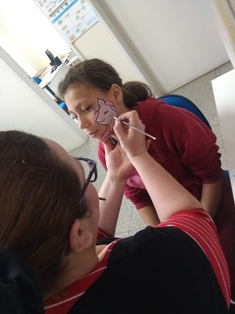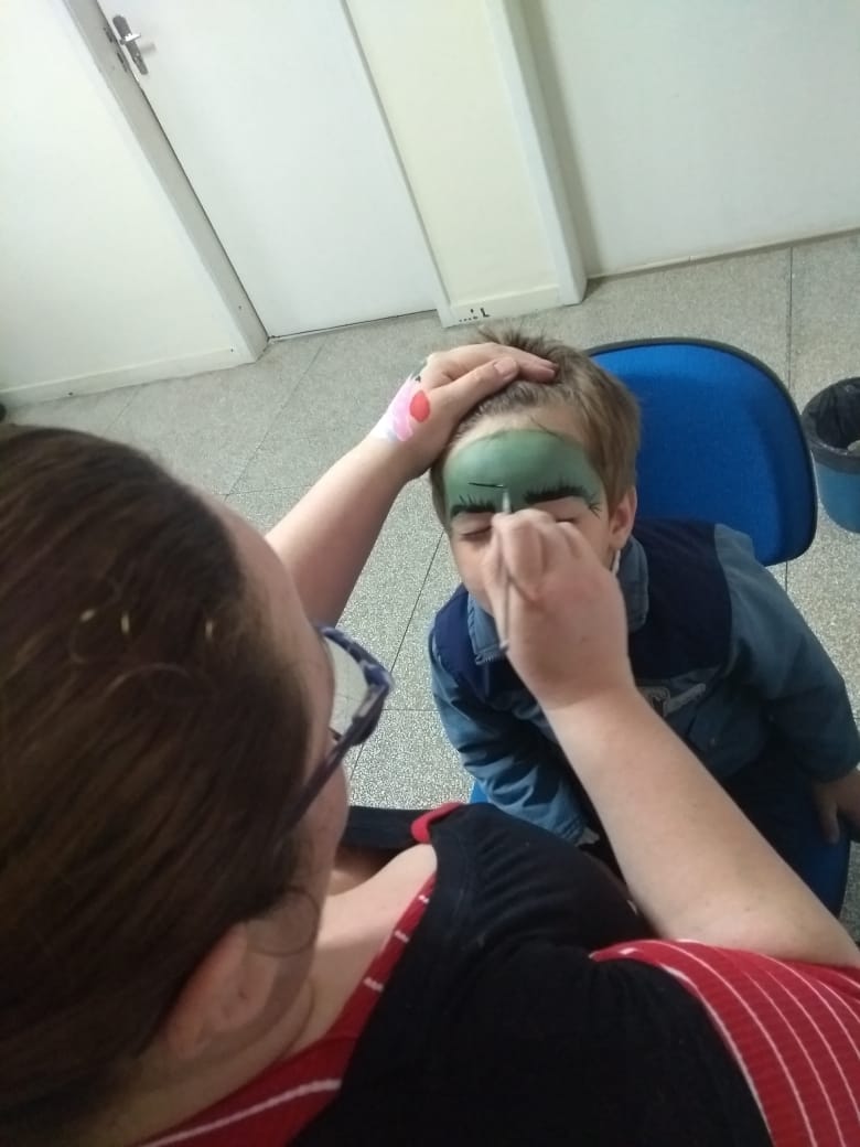 As crianças aproveitaram o evento para realizar a pintura fácil com o acompanhamento de Roberta Pinheiro da "Pinturinhas da Roby", uma parceria do equipamento de assistência social.
