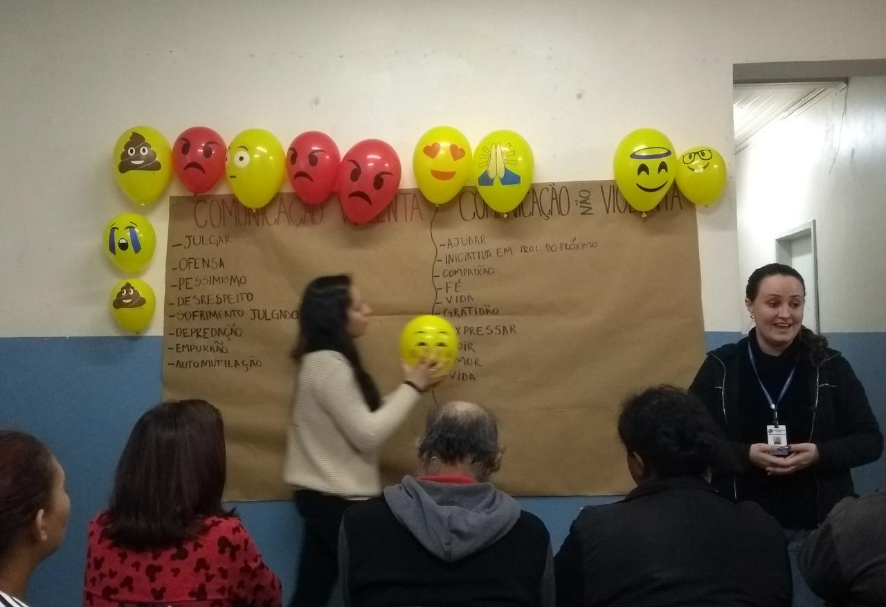 De acordo com a coordenadora do CREAS III, Camila Moraes de Oliveira, estiveram presentes 42 pessoas. Na oportunidade foi apresentado um vídeo que introduz ao tema da comunicação não violenta e relata as manifestações humanas de forma violenta e não violenta. “Após o vídeo realizamos uma dinâmica com balões para os envolvidos expressarem momentos que já vivenciaram a comunicação violenta e a não violenta. Assim, registraram de forma participativa os momentos de suas vidas que já foram marcados por essas situações, despertando a empatia com a história do outro. Foi um momento reflexivo que avançamos no processo de tentar se comunicar de forma não violenta, ou seja, falar de forma positiva”, explicou a coordenadora.