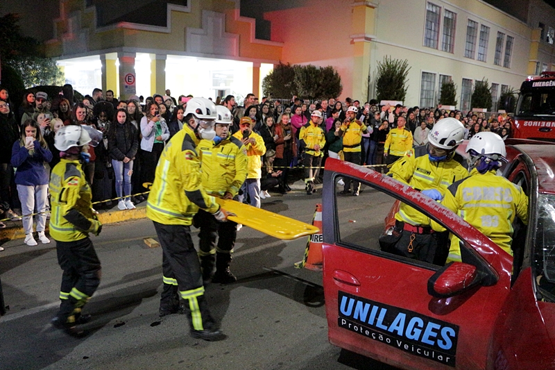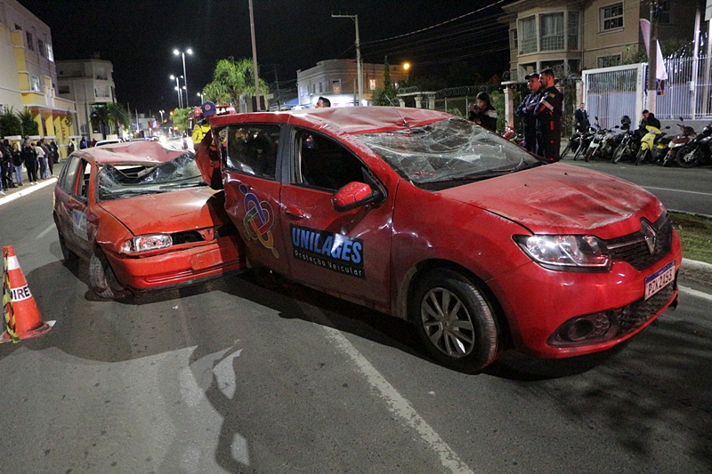 Duas simulações de resgate de pessoas presas no interior de veículos acidentados foram realizadas, em Lages, pela Diretran, em parceria com o Corpo de Bombeiros, como atividade alusiva ao Maio Amarelo, mês das ações educativas voltadas à prevenção de acidentes.