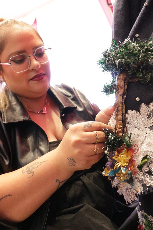 Este ano, o tema sustentabilidade norteou o trabalho, trazendo reflexões sobre os impactos no meio ambiente que podem ser reduzidos através da reciclagem. “Queria algo inovador. Não pretendia mais trabalhar somente com lã e pedrarias. Então surgiu esta pauta de sustentabilidade e comecei a pesquisar os trabalhos artesanais com garrafas pets. Fiz alguns testes e vi que dali poderia sair flores e ornamentos lindos, e acabei me apaixonando pelas inspirações”, conta a estilista.
