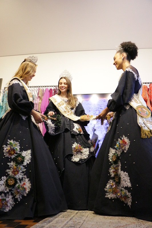 A reação da rainha, Mariane de Carvalho Vialli, a primeira princesa, Ana Maira Scos da Rosa de Oliveira, e a segunda princesa, Maria Gertrudes Brusius, foi de uma grande satisfação ao ver e vestir pela primeira vez as peças criadas especialmente para elas, com suas medidas e depois de muitas provas. “Tínhamos muita expectativa, pois já sabíamos do contexto e do tema, então imaginávamos que seria algo surpreendente, que nos fizesse refletir muito sobre a questão ambiental. Adoramos”, ressalta a primeira princesa, Ana Maira.