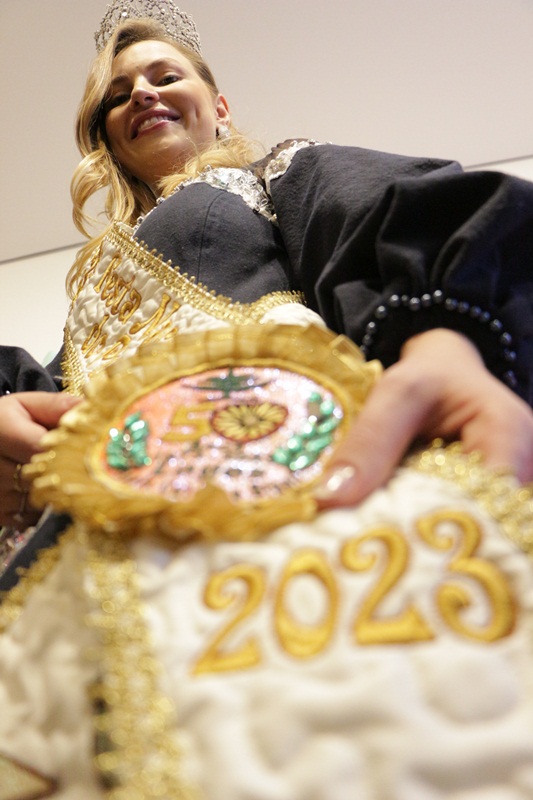 Pensar em um tema diferente a cada ano nem sempre é uma tarefa fácil. Superar expectativas e ao mesmo tempo manter-se no propósito de contar a história e cultura da região através dos vestidos vem sendo o maior desafio a cada edição. “Todos os anos os vestidos são pensados para que tenham exuberância e realmente aguce a curiosidade das pessoas. Não é fácil superar as expectativas a cada ano. No ateliê temos um lema de que os vestidos contêm a história da Serra Catarinense, para que as pessoas de fora possam identificar facilmente nossa cultura através dos trajes, aproveitando os olhares que estão direcionados para a realeza e assim divulgar a nossa cidade”, comenta.