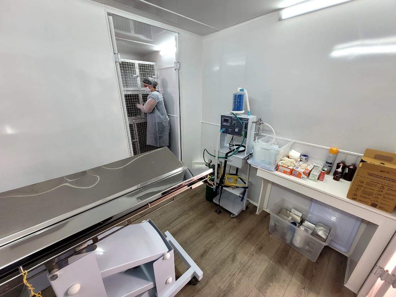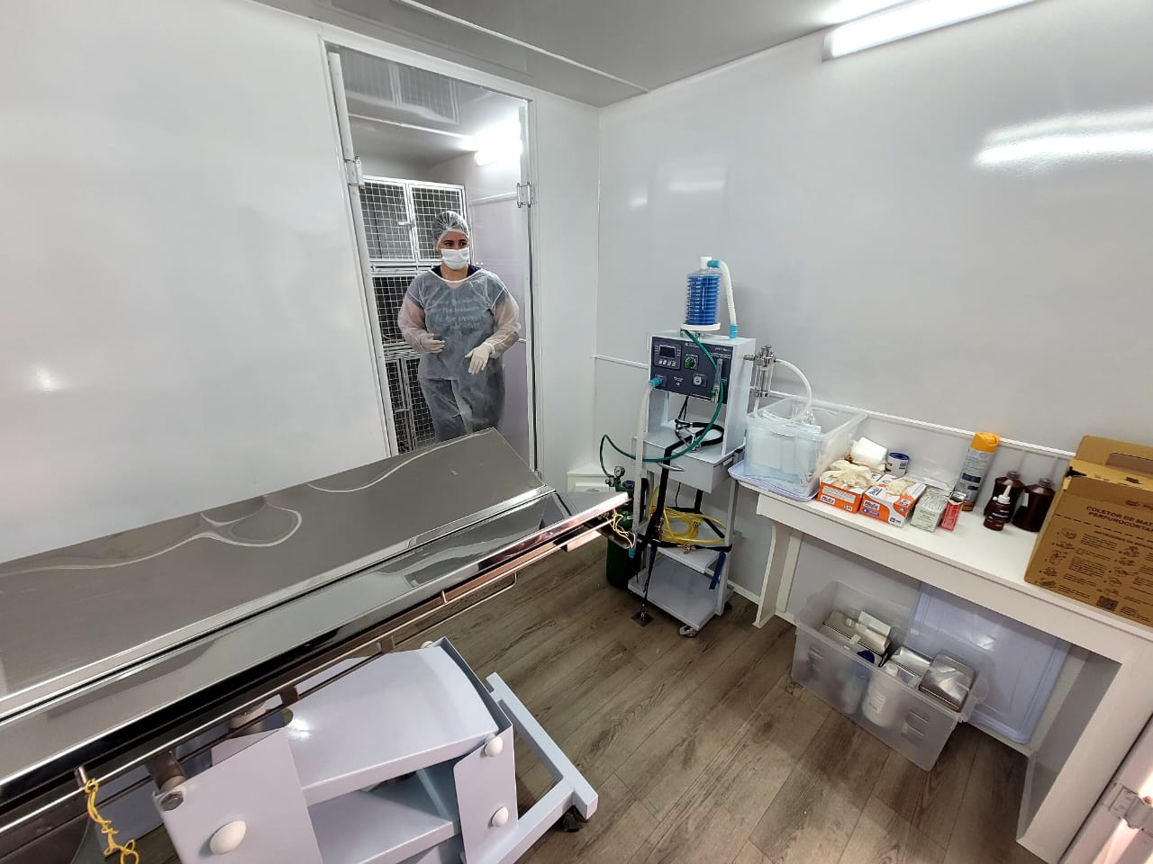Furgão sobre eixos, acoplável a outro veículo, adaptado como um espaço hospitalar, subdividido entre Sala de Triagem, Centro Cirúrgico e Cômodo de Recuperação, este com oito compartimentos, o castramóvel, portanto, estreia no bairro Penha, a primeira região a ser agraciada com o serviço gratuito, composta pelos bairros São Miguel e Itapuã e Loteamento Nadir, e eleva a quantidade de procedimentos já efetuados em Lages. Nesta primeira remessa, disponibilizadas 16 vagas a estes endereços. Corpo técnico da prefeitura de desempenho no castramóvel - dois veterinários e mais três servidores de apoio.