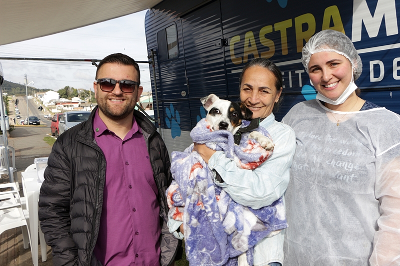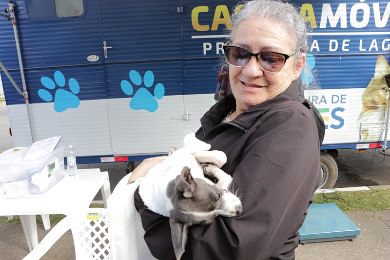 Etevaldo Machado, morador do bairro Penha, não perdeu tempo e levou o seu cãozinho Catatau para receber a castração na manhã desta sexta-feira (26 de maio). Poder ter seu bichinho por mais tempo perto de si foi um dos ensejos de ir até o castramóvel. “O meu cachorro é o Catatau. É meu e da minha mãe. E vim fazer a castração dele, uma iniciativa da prefeitura muito boa, muito legal. Nós temos dois, no outro já foi feita a castração. É bom porque assegura a defesa deles, dá longevidade, freia a proliferação. Vim assim que soube. Joia porque o Município faz de tempo em tempo ‘pra’ quem não pode pagar. O outro cachorrinho fez e ‘tá’ super bem, por isto com este sabemos que vai correr tudo ‘ok’.”