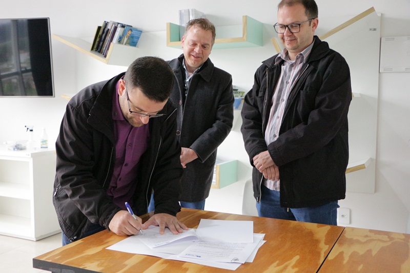 A Lei estabelece normas e procedimentos para a instalação de infraestrutura de suporte às Estações Transmissoras de Radiocomunicação (ETR) no município. O ato foi realizado no Orion Parque Tecnológico, com a presença do vereador autor da Lei, Agnelo Miranda, do diretor executivo do Orion, Claiton Camargo, secretários municipais e convidados especiais, entre eles representantes de empresas e startups vinculadas ao Orion Parque.