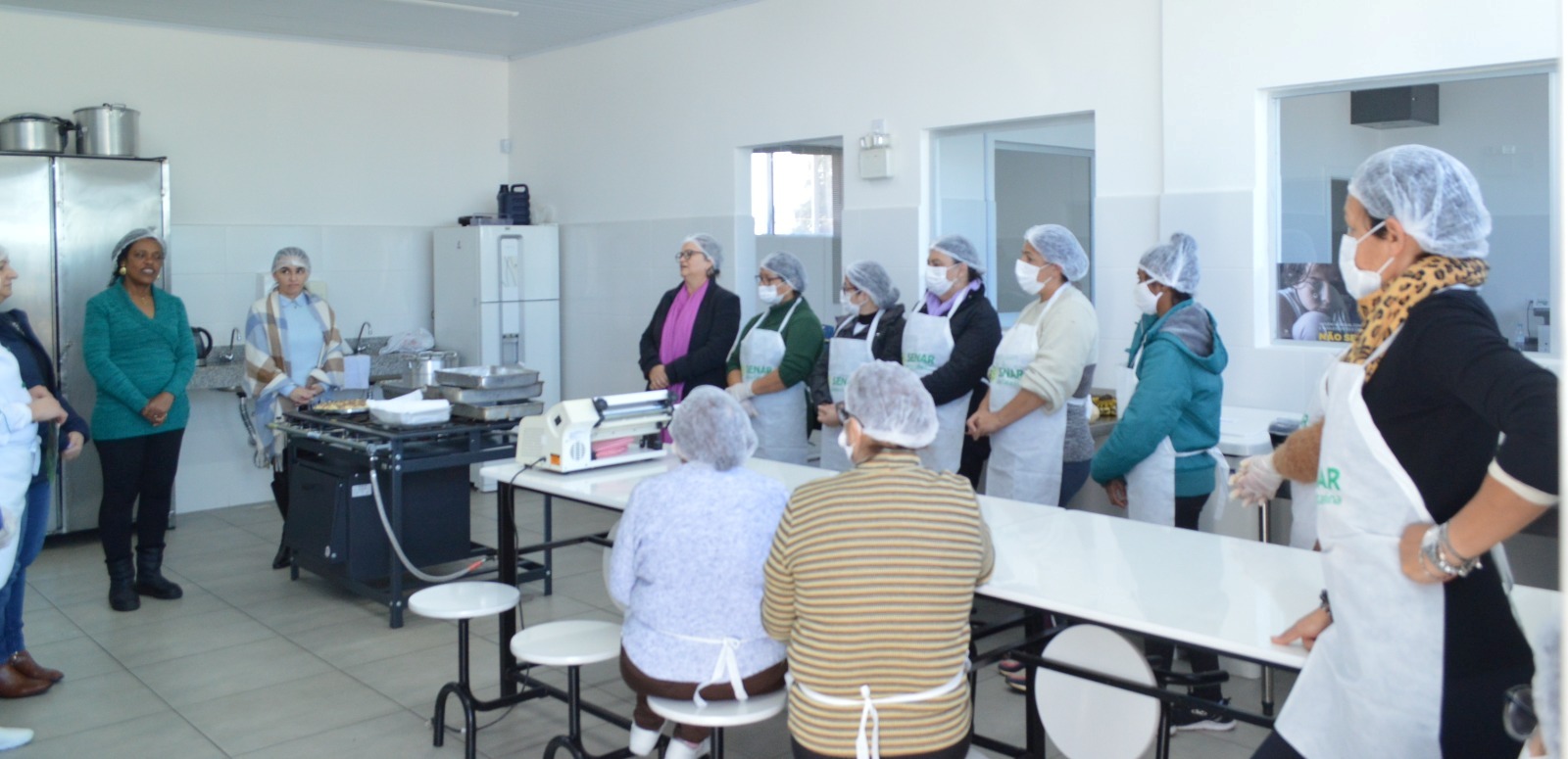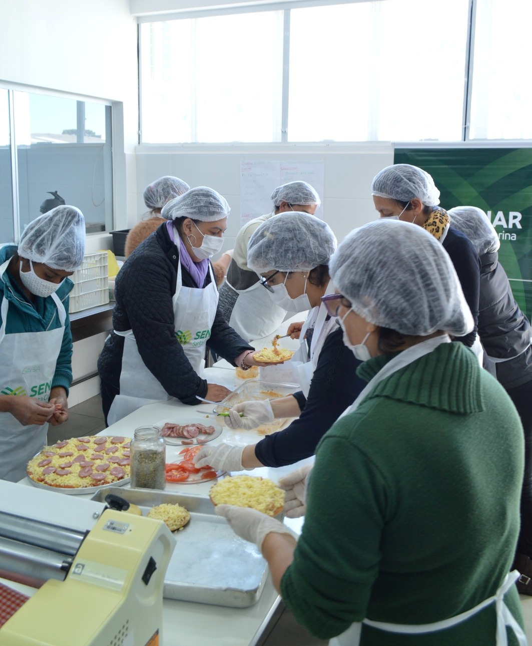 Ascender o potencial de autonomia financeira das famílias em territórios com características econômicas e sociais homogêneas entre si. Finalidade da oficina de Produção Caseira de Massas para Congelamento, desenvolvida nesta quinta e sexta-feira, dias 1º e 2 de junho, pela Diretoria de Segurança Alimentar e Nutricional, por intermédio do Banco de Alimentos - duas das subdivisões de serviços da Secretaria Municipal da Assistência Social -, em parceria com o Serviço Nacional de Aprendizagem Rural (Senar)/Federação da Agricultura e Pecuária do Estado de Santa Catarina (Faesc) e Vigilância Sanitária, ligada à Secretaria da Saúde.